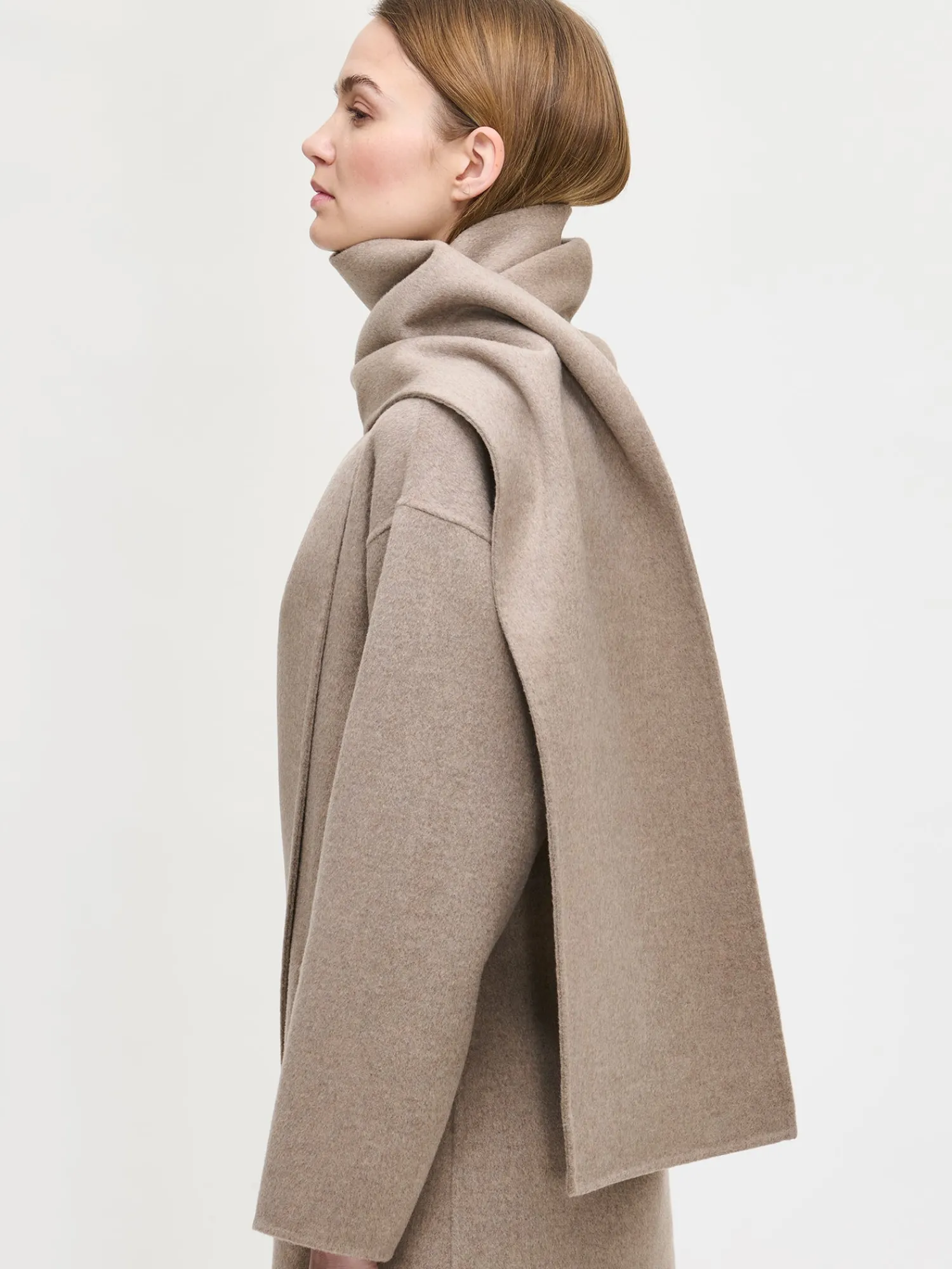Naisten ihastuttava beige Elli-villakangashuivi. Minimalistisen tyylikäs ja ajaton villakangashuivi on täydellinen pari saman väriseen . Materiaali on laadukasta villa-polyesteri sekoitetta, mikä tekee Elli-huivista erinomaisen valinnan viileisiin päiviin ympäri vuoden. Huivin koko on noin 25 x 200 cm.