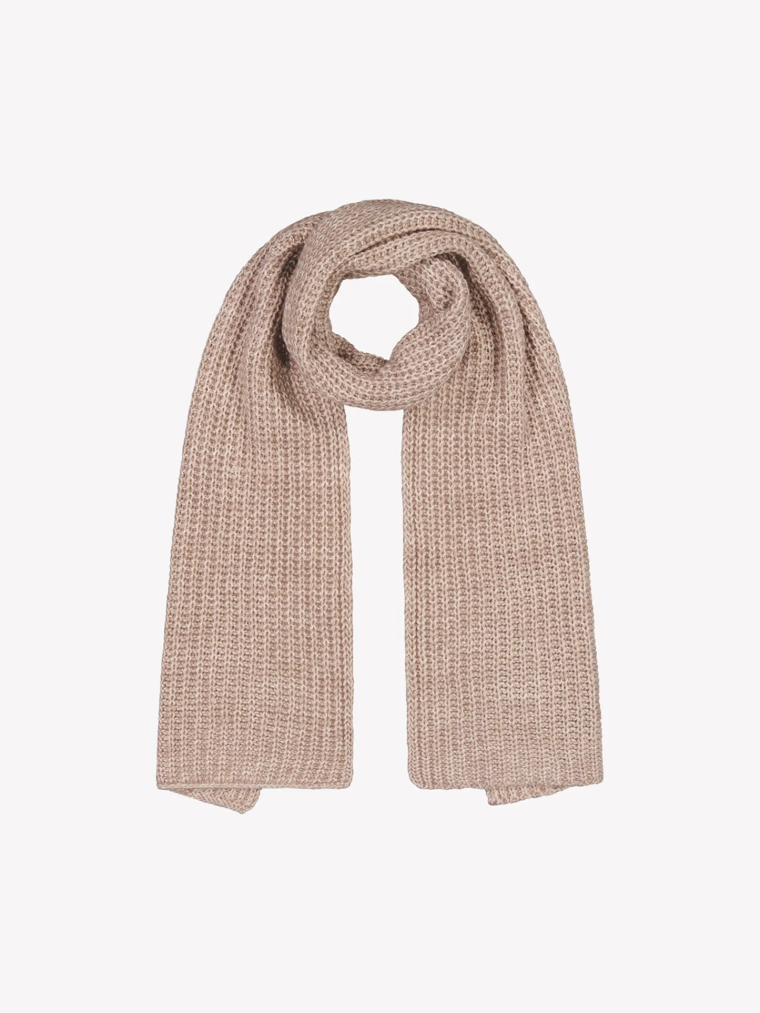 Naisten muhkea Huurre-patenttineulehuivi kauniissa meleeratun beigen sävyssä. Kaulahuivi suojaa ja pitää lämpimänä viileässäkin säässä. Yhdistä Huurre-huivi saman sarjan tai ja viimeistele talven asukokonaisuus ja lämpimällä toppatakilla. Huurre-kaulahuivi on neulottu laadukkaasta puuvillan ja kierrätetyn villan sekoitteesta. Huivin mitta on 31 cm x 180 cm. Neuleen hoito-ohjeet löydät