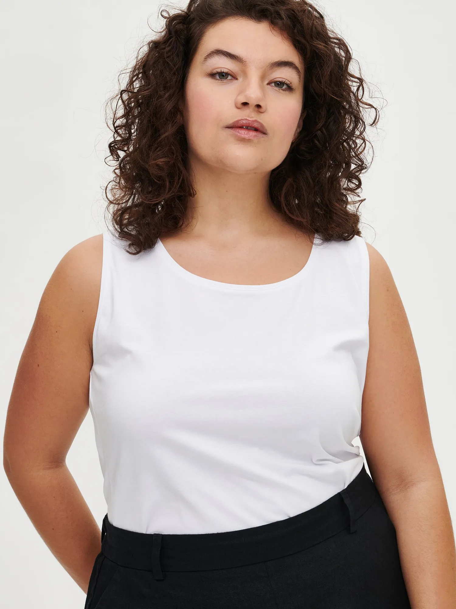 Sofie (ensimmäisessä kuvassa) on 172 cm pitkä ja hänellä on päällään tuotteesta koko XL. Mallin ympärysmitat ovat: rinta 105 cm, vyötärö 86 cm ja lantio 110 cm.