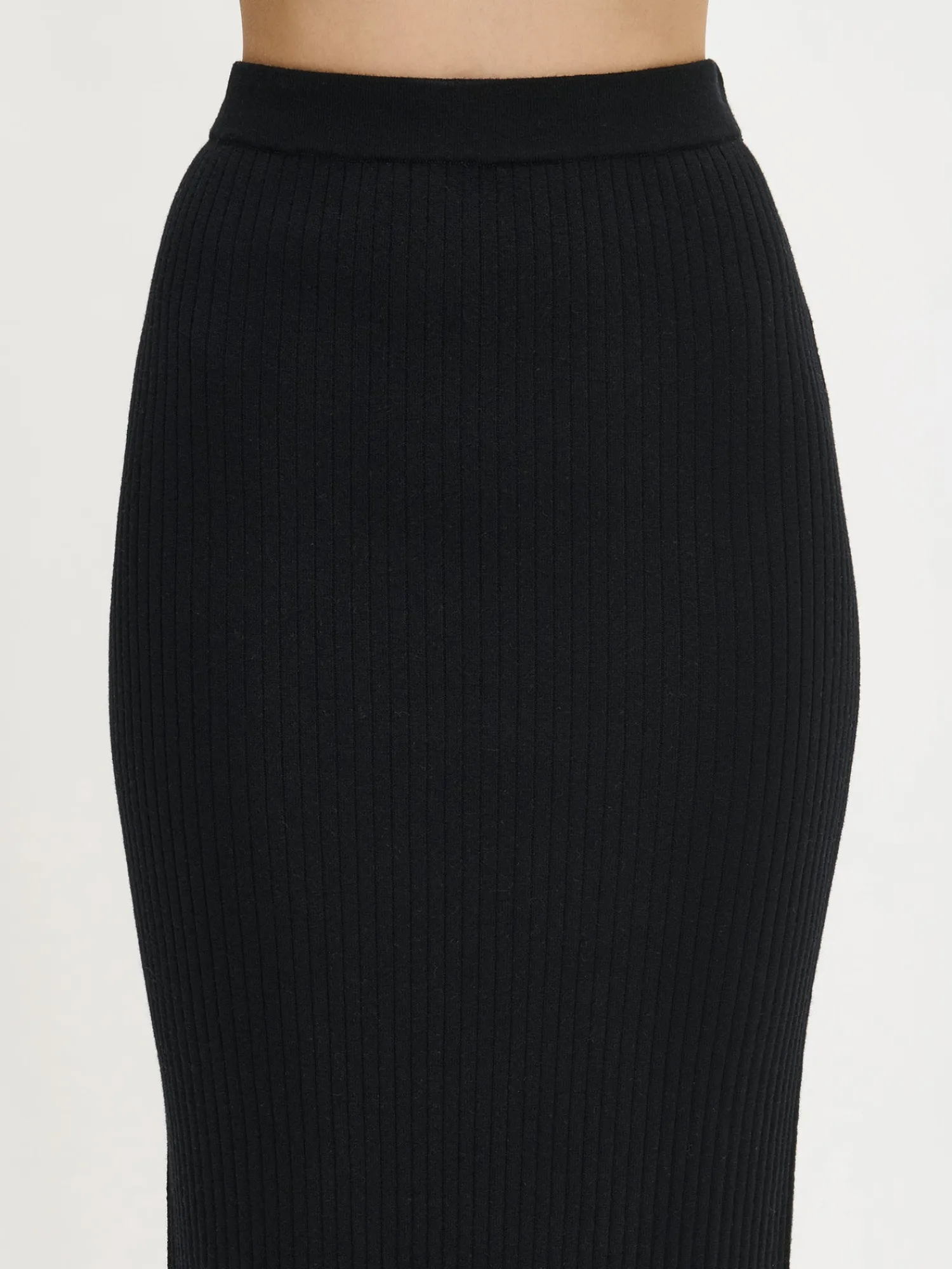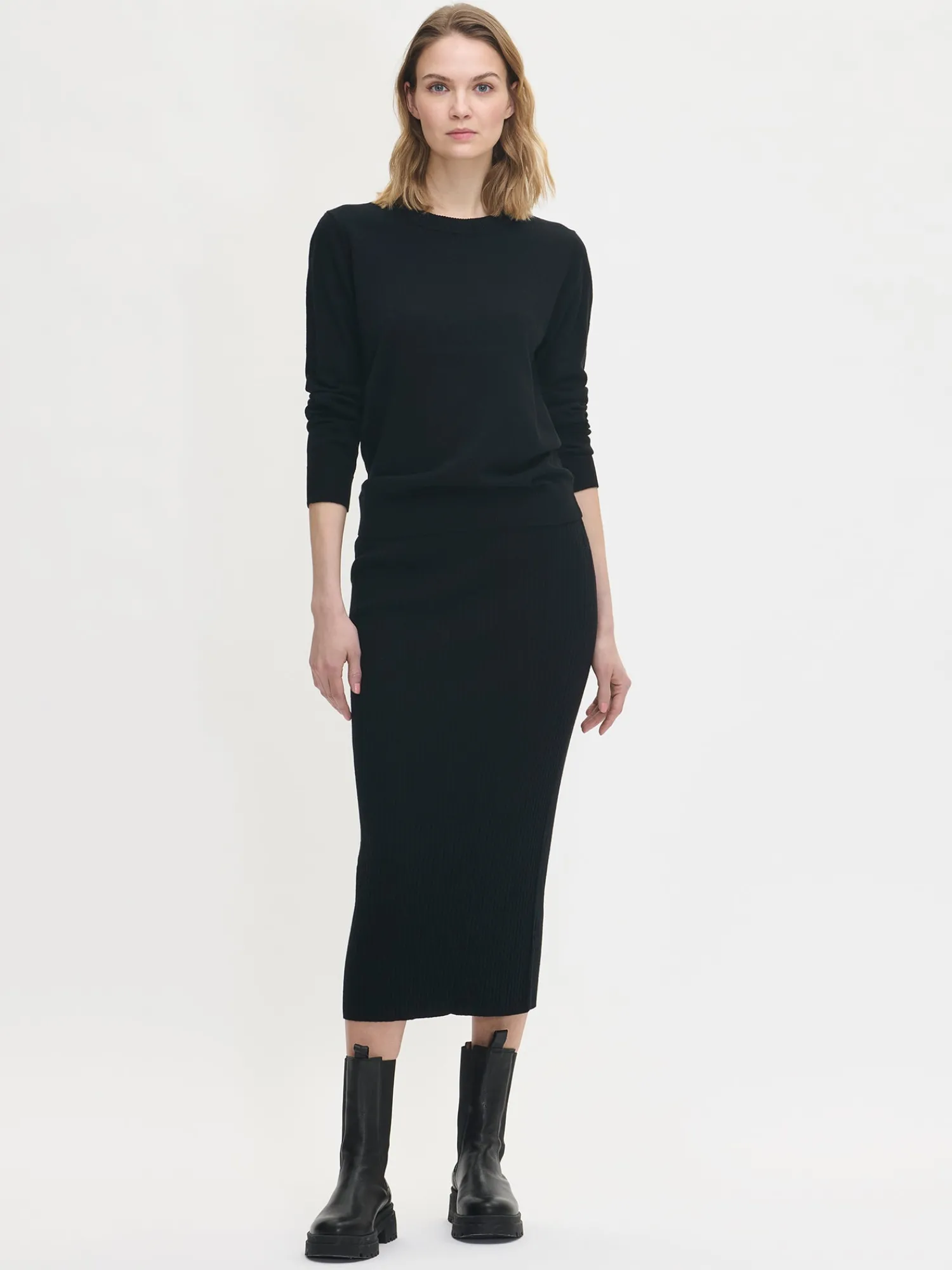 Naisten tyylikäs ja mukava musta Villis -ribbihame. Kauniissa muotoonneulotussa hameessa on joustava vyötärö. Hameen pituus koossa M on noin 85 cm. Hameen neulos on 5×2 ribbiä ja materiaali on laadukasta merinovillan ja puuvillan sekoitetta. Tuotteen valmistuksessa on käytetty sertifioitua mulesing-vapaata merinovillaa.