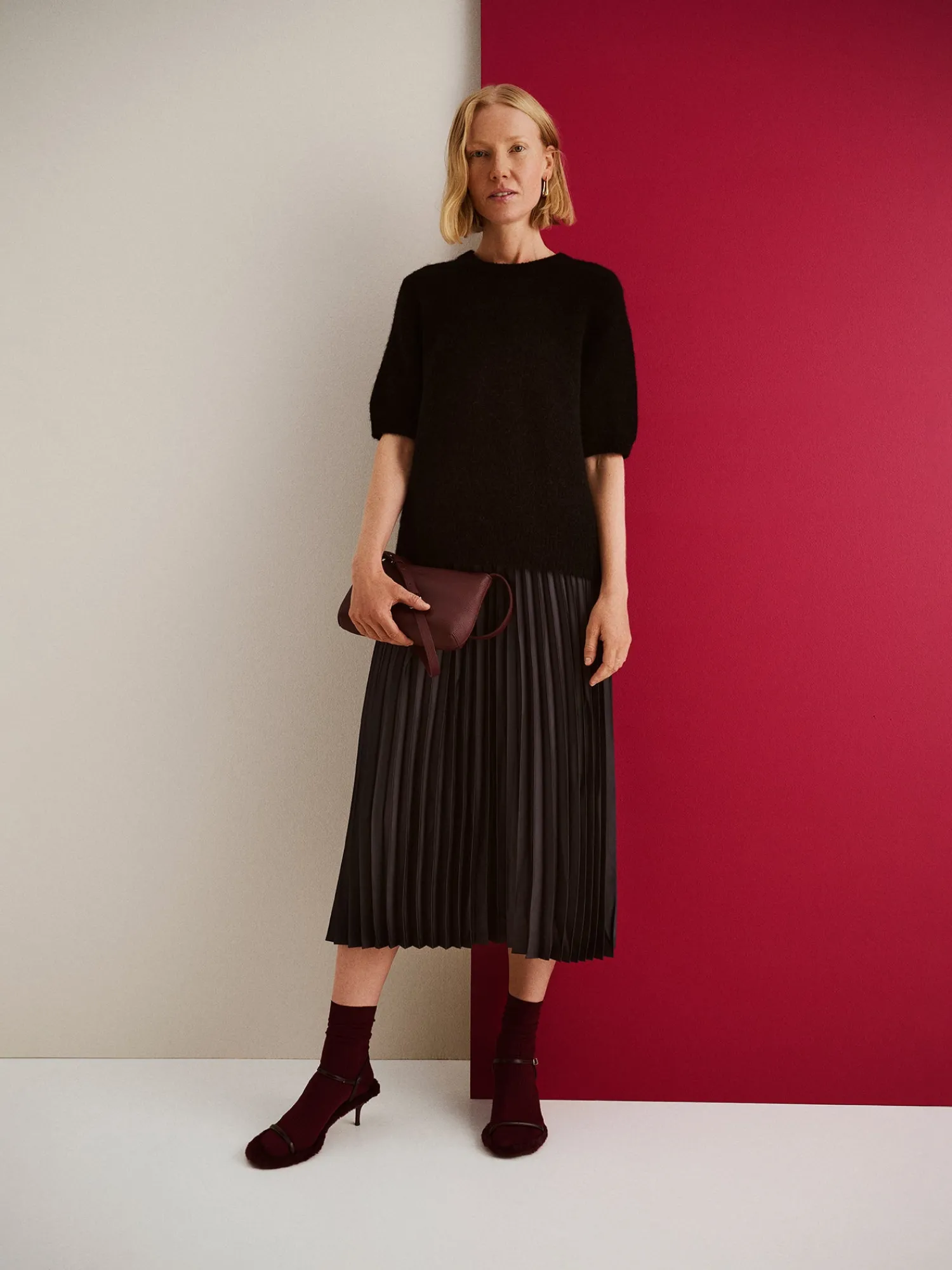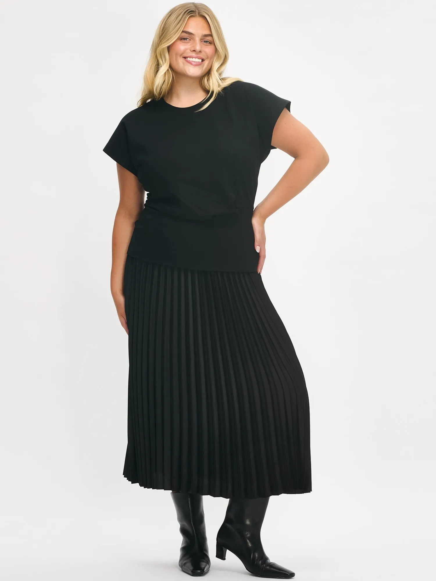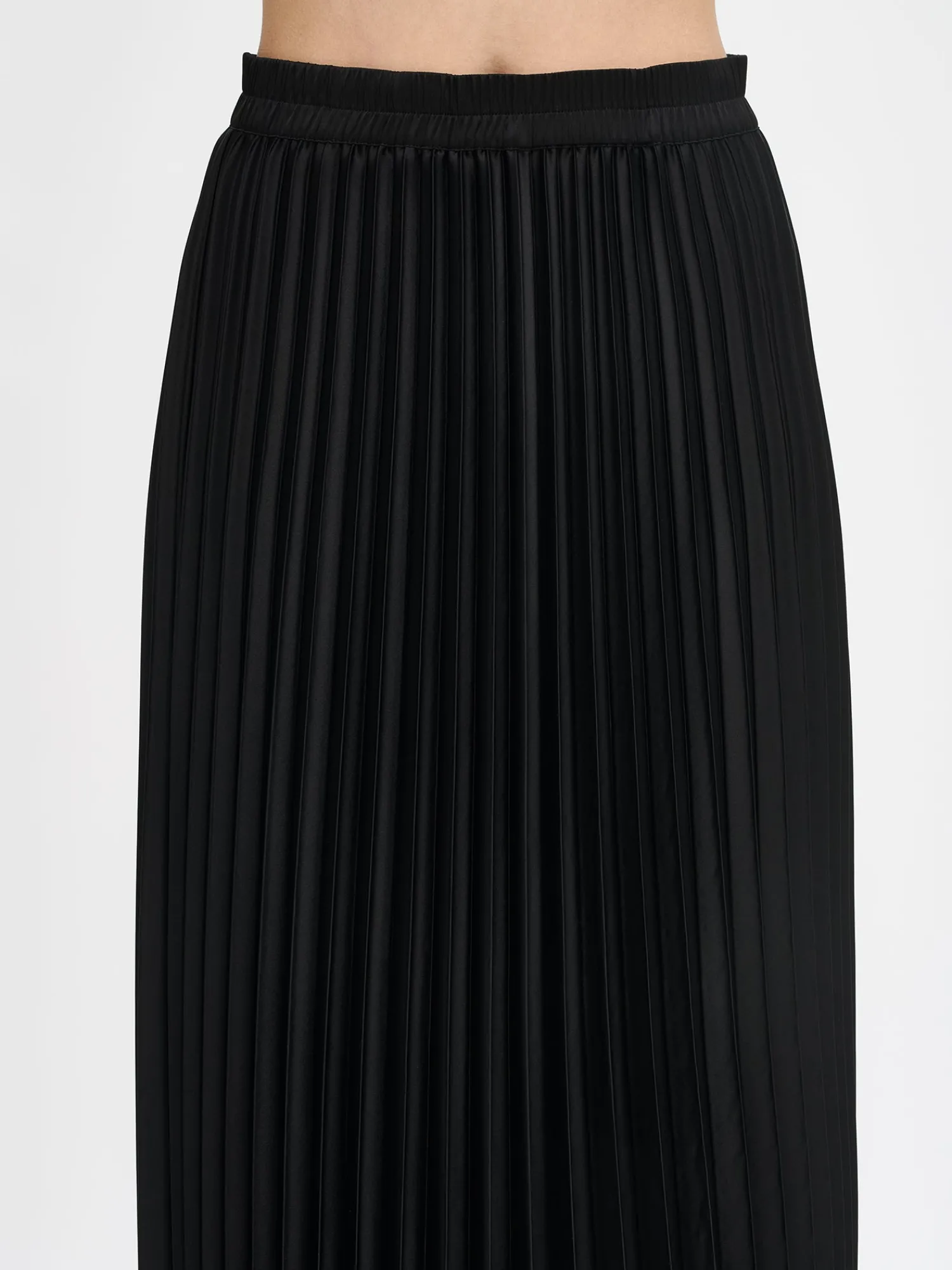 Naisten kauniisti laskeutuva musta Taite-hame. Tyylikäs Taite-hame muuntuu saumattomasti arjesta juhlaan erilaisten asusteiden ja yläosien avulla. Yhdistä hame vaikkapa mukavan saman sävyisen Pamela-neuleen kaveriksi. Hameessa on kaunis kapea pliseeraus, joustava vyötärö ja vuori. Hameen pituus koossa 38 on noin 85 cm. Materiaali on helppohoitoista polyesteria ja hameen vekit pysyvät siistinä käytössä.