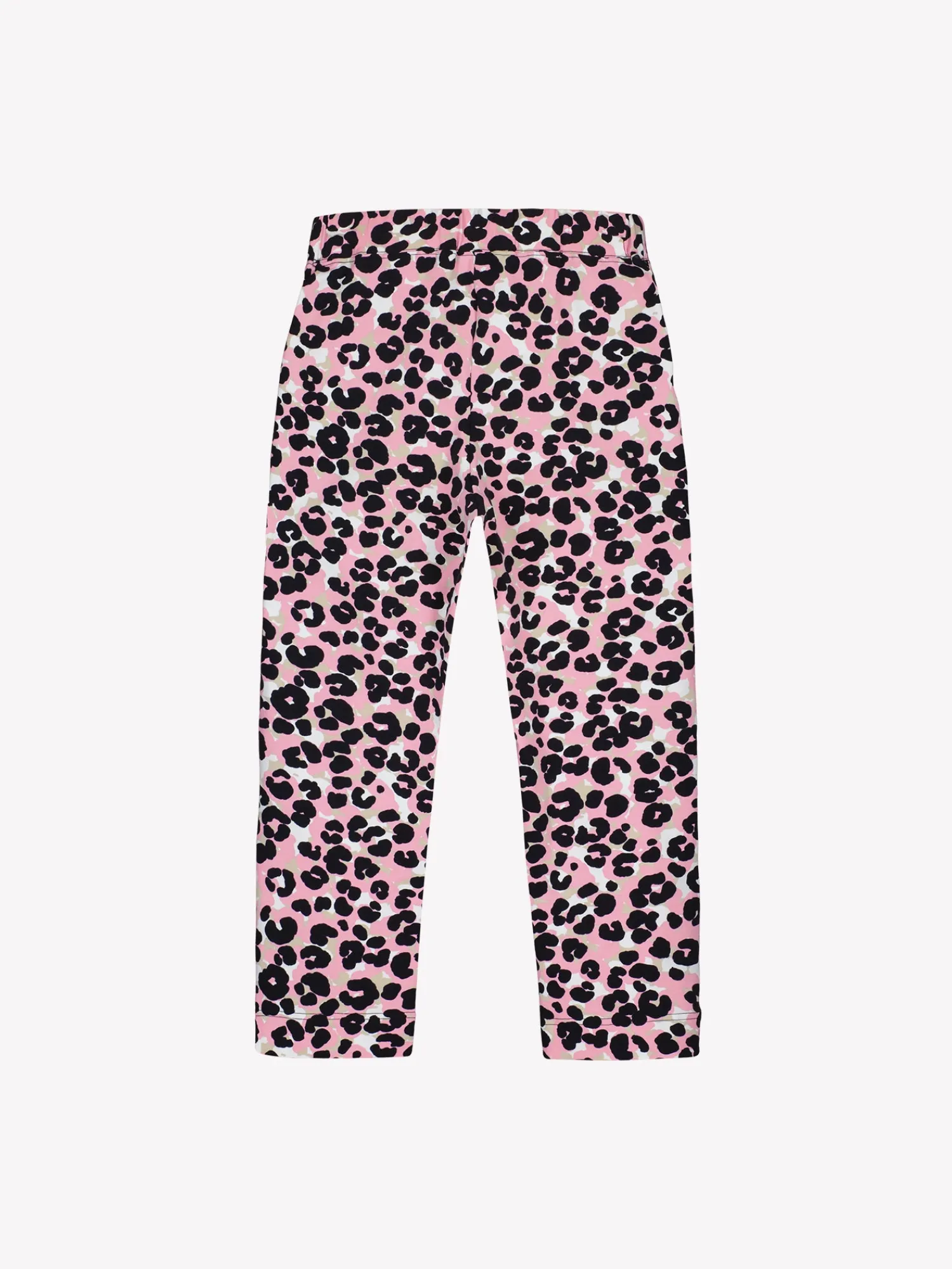 Naisten leopardikuviolliset vaaleanpunaiset Babette-trikoohousut. Kevyissä housuisssa on sivuissa taskut ja lahkeensuussa halkiot sekä kuminauhavyötärö. Lahkeen sisämitta koossa M on noin 58 cm. Materiaali on laadukasta, iholla miellyttävän pehmeältä tuntuvaa ja helppohoitoista puuvilla-elastaania, joka pysyy hyvänä pesusta toiseen.