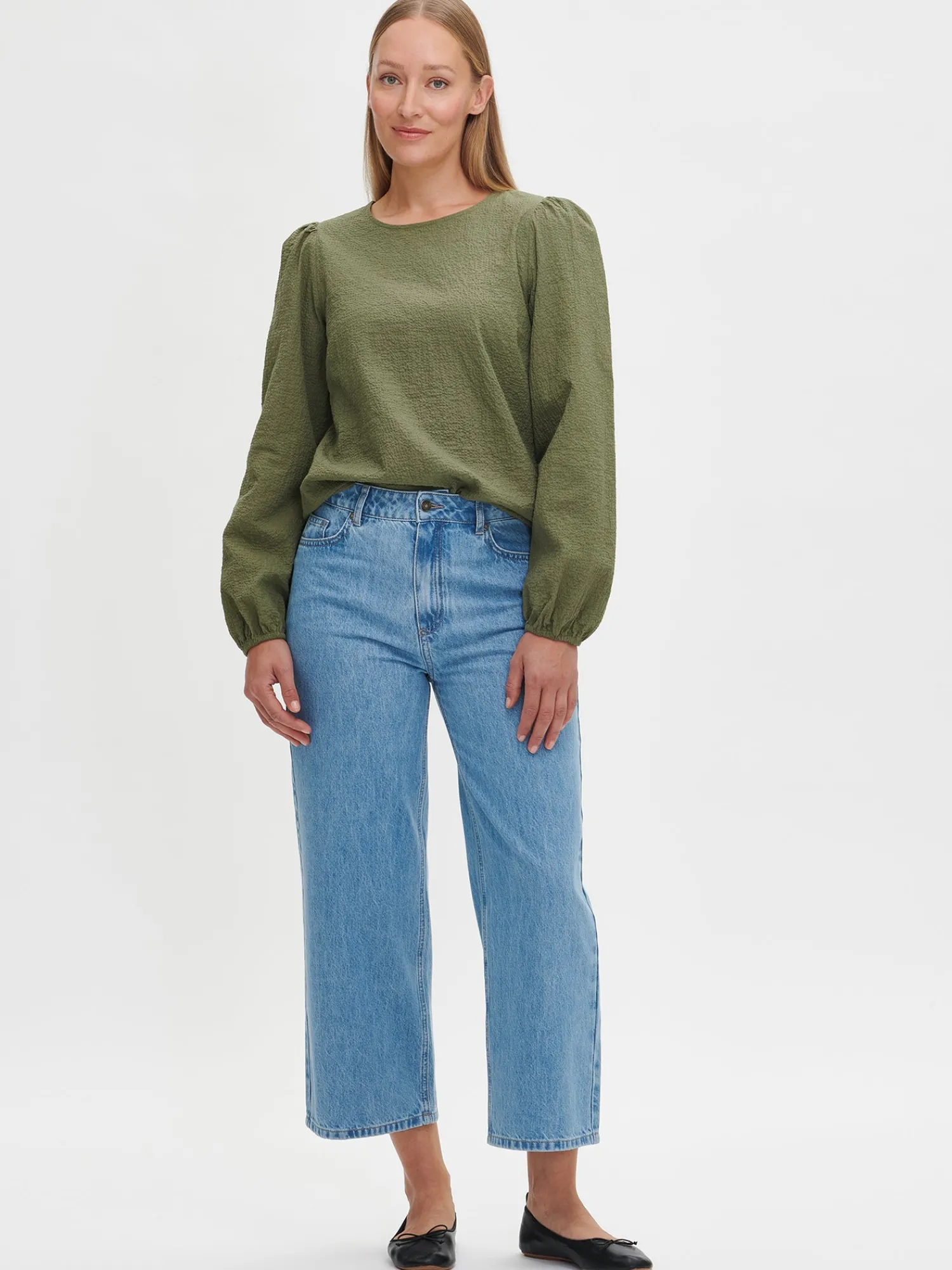 Naisten trendikkäät vaaleansiniset Cropped Levee-farkut, joissa on normaalikorkuinen vyötärö. Trendikkäästi vajaamittaiset Levee-farkut ovat helppo ja tyylikäs valinta arkeen. Farkuissa on vyötärökaitale, edessä vetoketju ja nappikiinnitys. Rennoissa farkuissa on taskut edessä ja takana sekä levenevät, vajaamittaiset lahkeet. Lahkeen sisäpituus koossa 38 on noin 65 cm. Materiaali on kudottua twillsidoksista puuvilla-denimkangasta. 20% kankaaseen käytetystä puuvillasta on kierrätettyä.