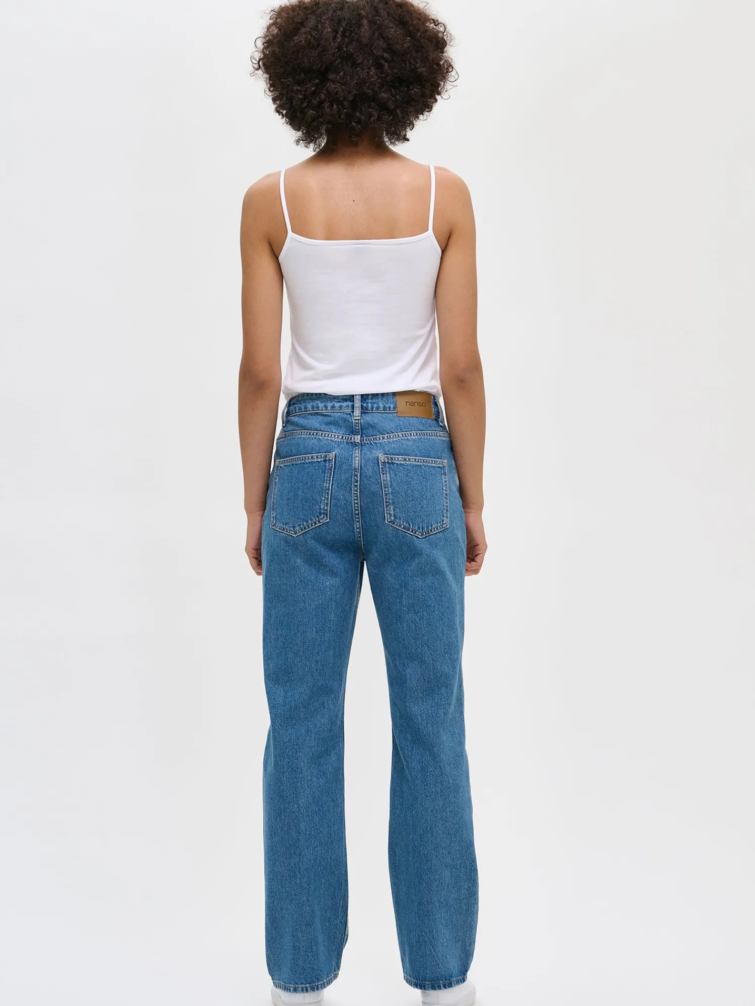 Naisten rennot vaaleansiniset Suora-farkut, joissa on normaalikorkuinen vyötärö. Klassiset ja mukavat suorat farkut ovat monen asukokonaisuuden runko. Hyvin istuvat farkut ovat vaatekaapin luottovaate, johon on aina ihanaa pukeutua. Suora-farkuissa on vyötärökaitale, edessä vetoketju ja nappikiinnitys. Farkuissa on taskut edessä sekä takana ja täyspitkät suorat lahkeet. Farkkujen lahkeen sisäpituus koossa 38 on noin 80 cm. Materiaali on kudottua twillsidoksista puuvilla-denimkangasta. 20% kankaaseen käytetystä puuvillasta on kierrätettyä.