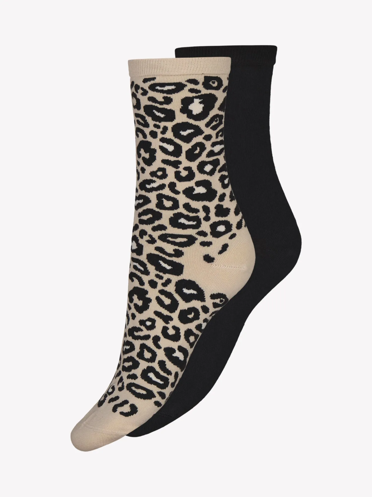 Voguen nilkkasukat on valmistettu pehmeästä ja laadukkaasta luomupuuvillasta. Kahden parin pakkauksessa on beige leopardikuosinen pari sekä yksivärinen musta sukkapari.