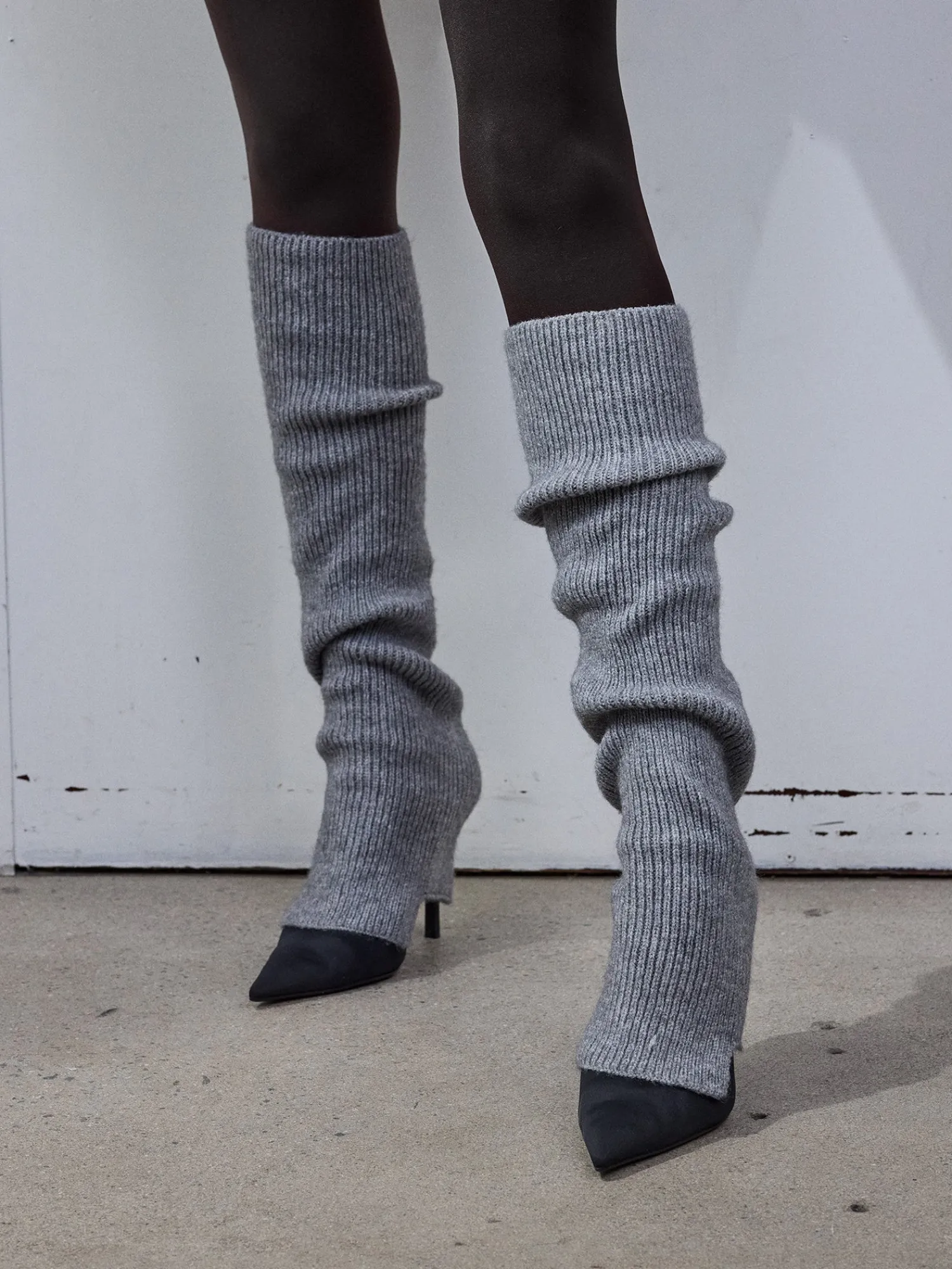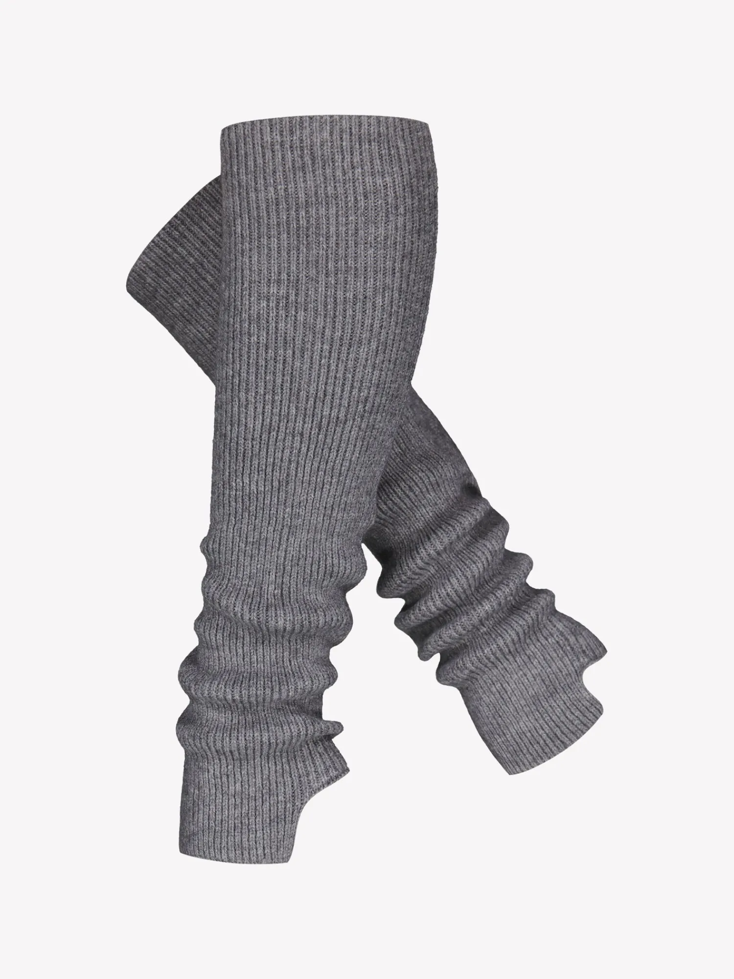 Voguen meleeratun harmaat tyylikkäät ja pehmeät villasekoitteesta valmistetut säärystimet klassisella ribbikuviolla. Lisäävät asuun ripauksen muodikkuutta käytännöllisyyttä unohtamatta.