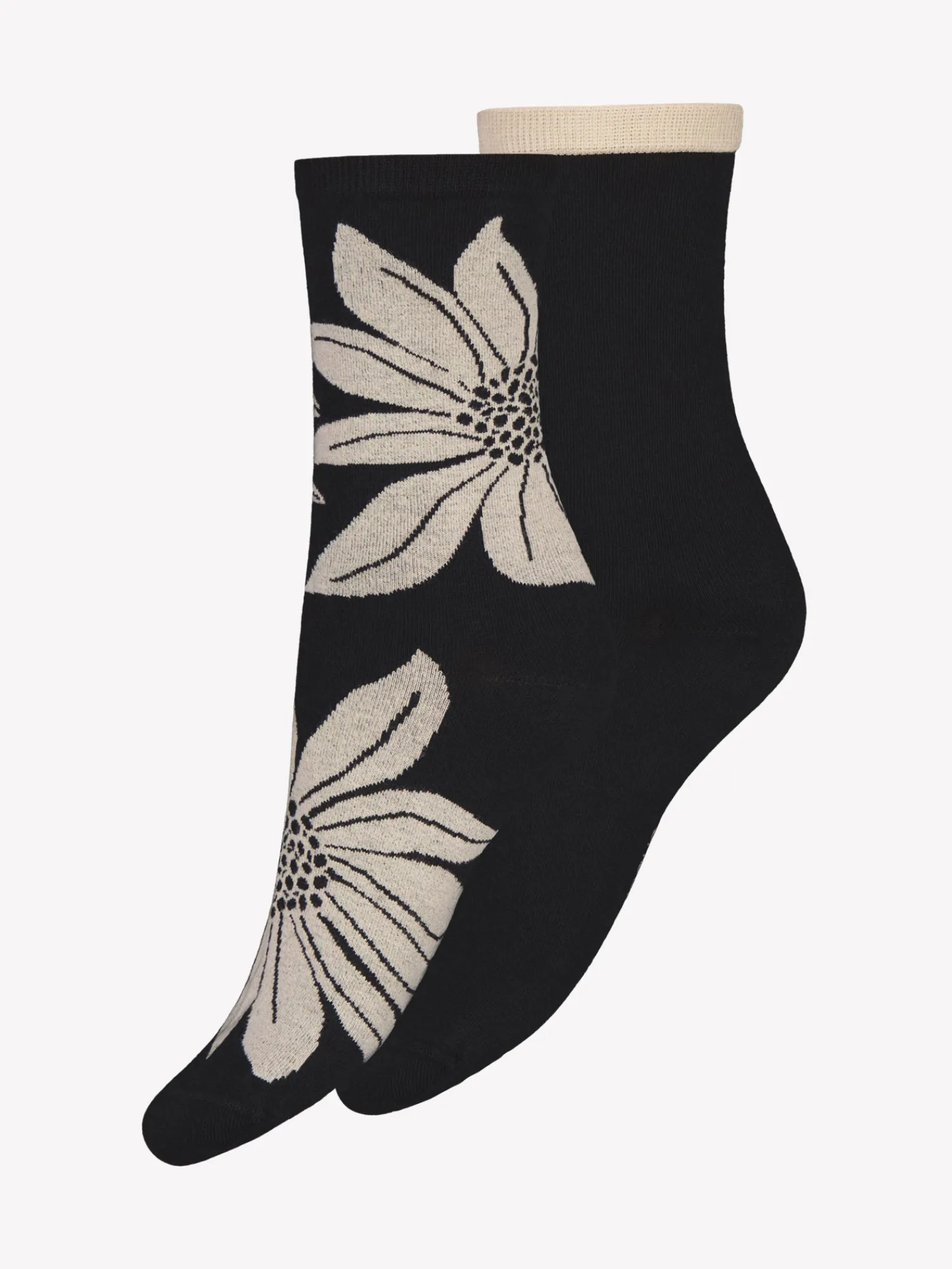 Voguen laadukkaat nilkkasukat orgaanisesta puuvillasta. Kahden parin pakkauksessa toisessa parissa on kaunis kukkakuvio beigellä ja toinen pari on musta yksivärinen.