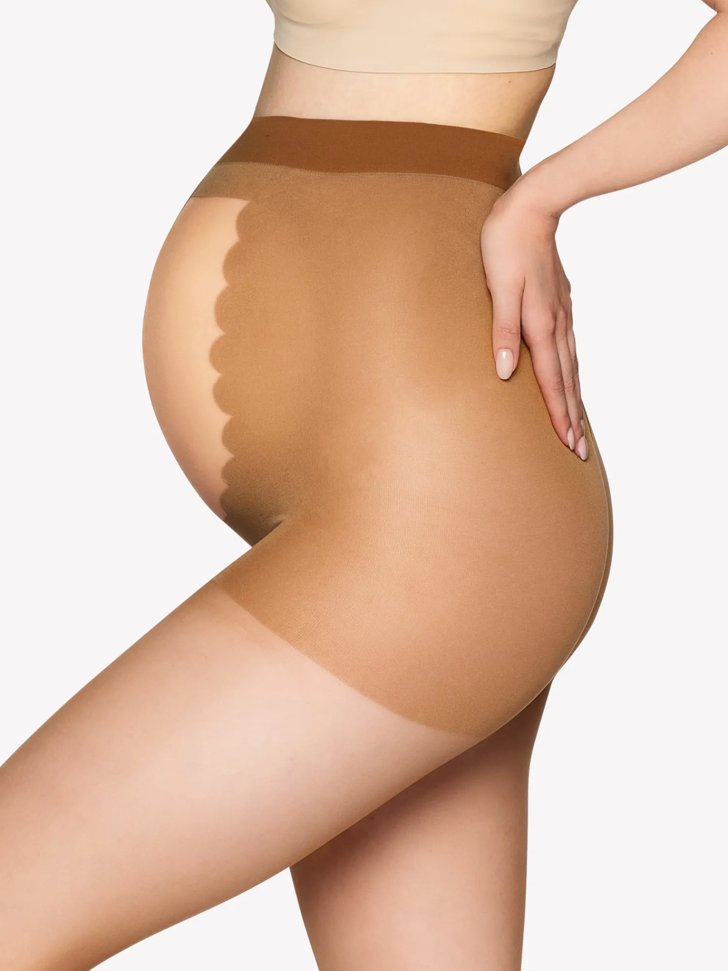 Mattapintaiset 20 denierin äitiyssukkahousut. Sukkahousut on valmistettu vastuullisesta, kierrätetystä polyamidista ja 3D-laatu tarjoaa maksimaalista joustavuutta ja mukavuutta sekä tilaa kasvavalle vatsalle. Sukkahousuissa on puuvillahaarakiila ja tasosaumat ja ne ovat täydellinen valinta tulevan äidin jokapäiväiseen käyttöön.