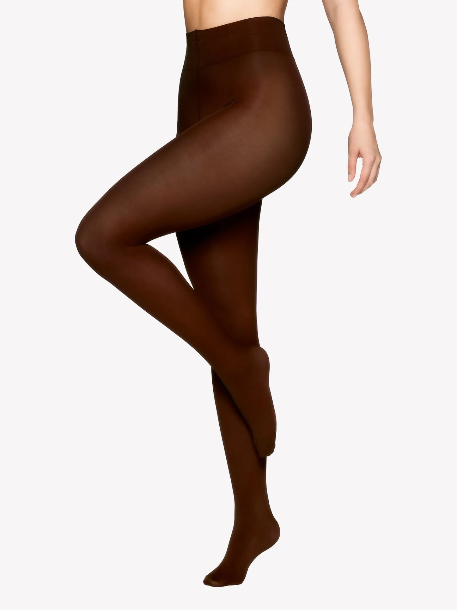 Kaakaon ruskeat matta sukkahousut antavat elegantin ilmeen tulevan syksyn asuihin. Muodikkuuden lisäksi sukkahousut lisäävät mukavuutta paksumman materiaalin ja leveän vyötärönauhan myötä. Sukkahousut on valmistettu kierrätystä Econyl-polyamidista sekä elastaanista.