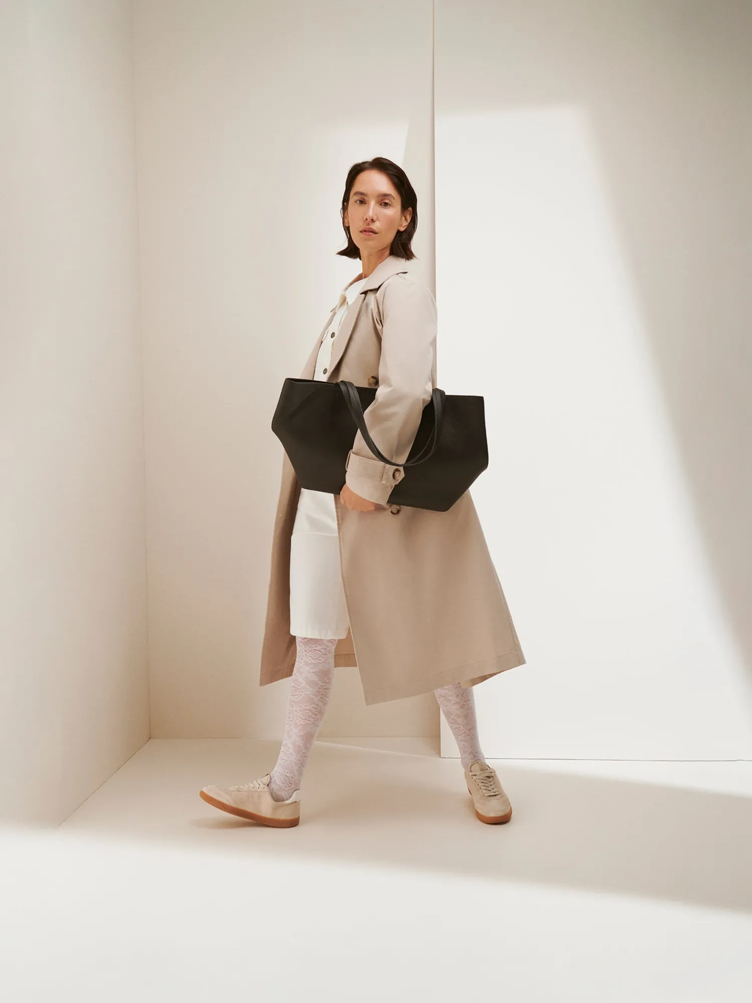 Tyylikkyys ja käytännöllisyys kohtaavat – musta klassinen Maxi Naru nahkalaukku on oikea arjen pelastaja. Minimalistisen tyylikäs tote bag-tyylinen laukku sulautuu vaivattomasti monenlaiseen asuun.
