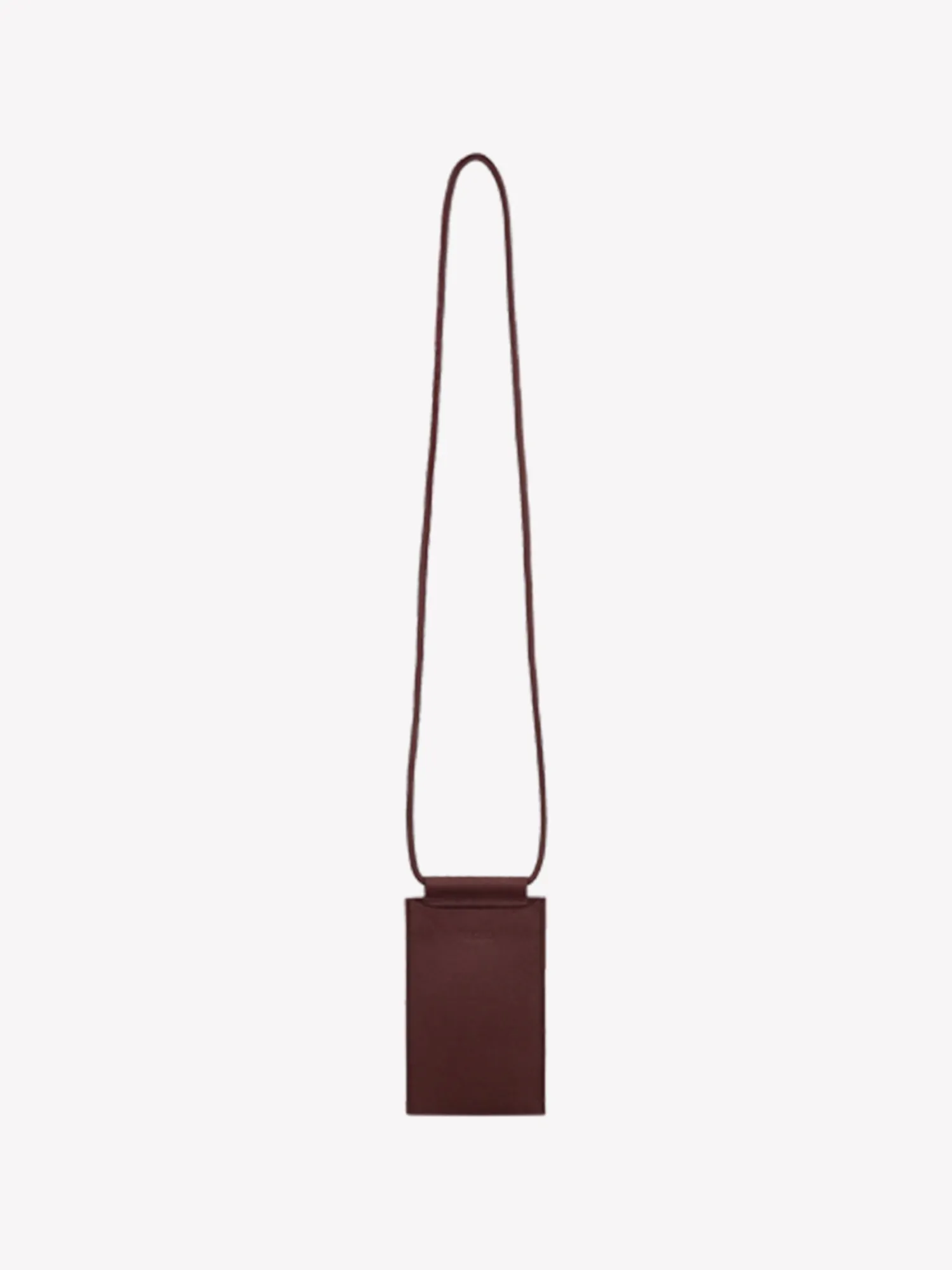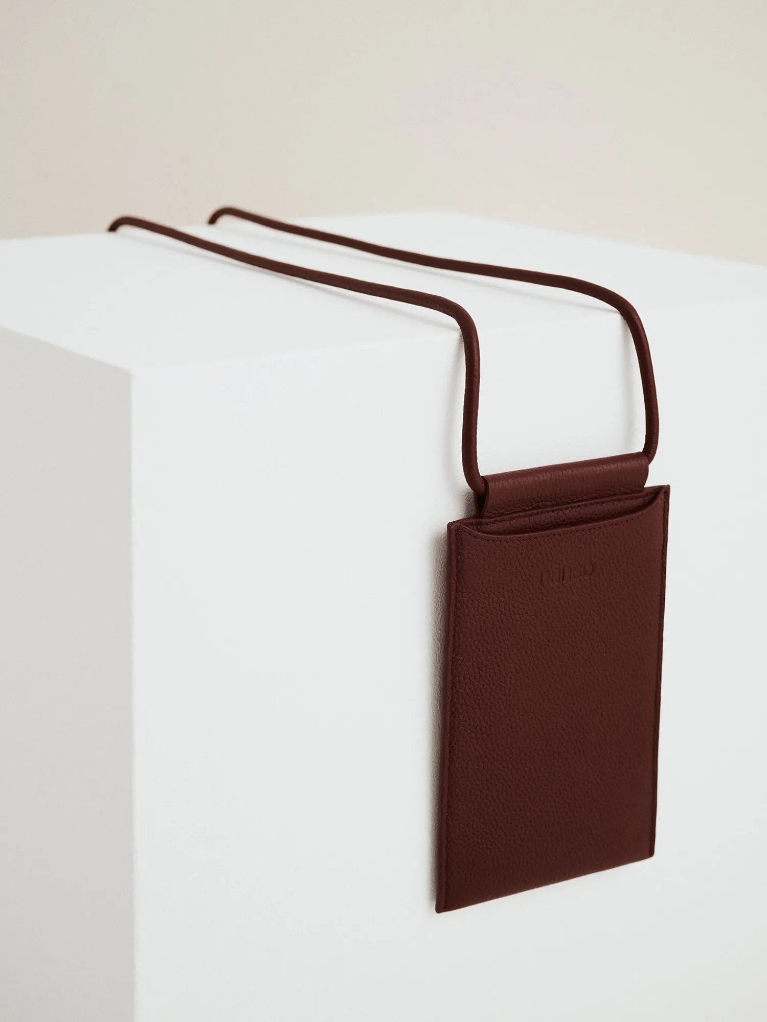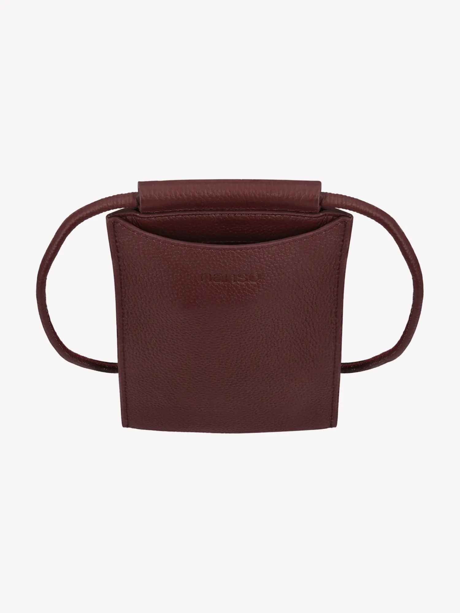 Tyylikäs tumma viininpunainen Mini Naru- puhelinlaukku. Käytännöllinen pieni puhelimelle sopiva laukku hurmaa arjessa helppoudellaan.