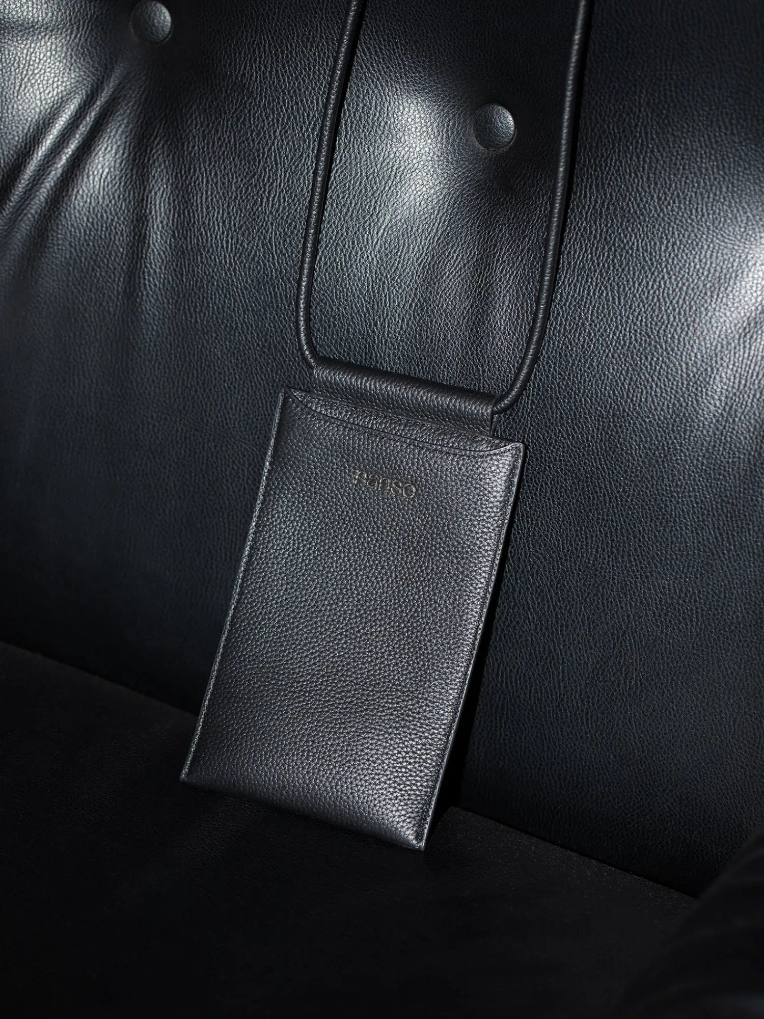 Tyylikäs musta Mini Naru- puhelinlaukku. Käytännöllinen pieni puhelimelle sopiva laukku hurmaa arjessa helppoudellaan.