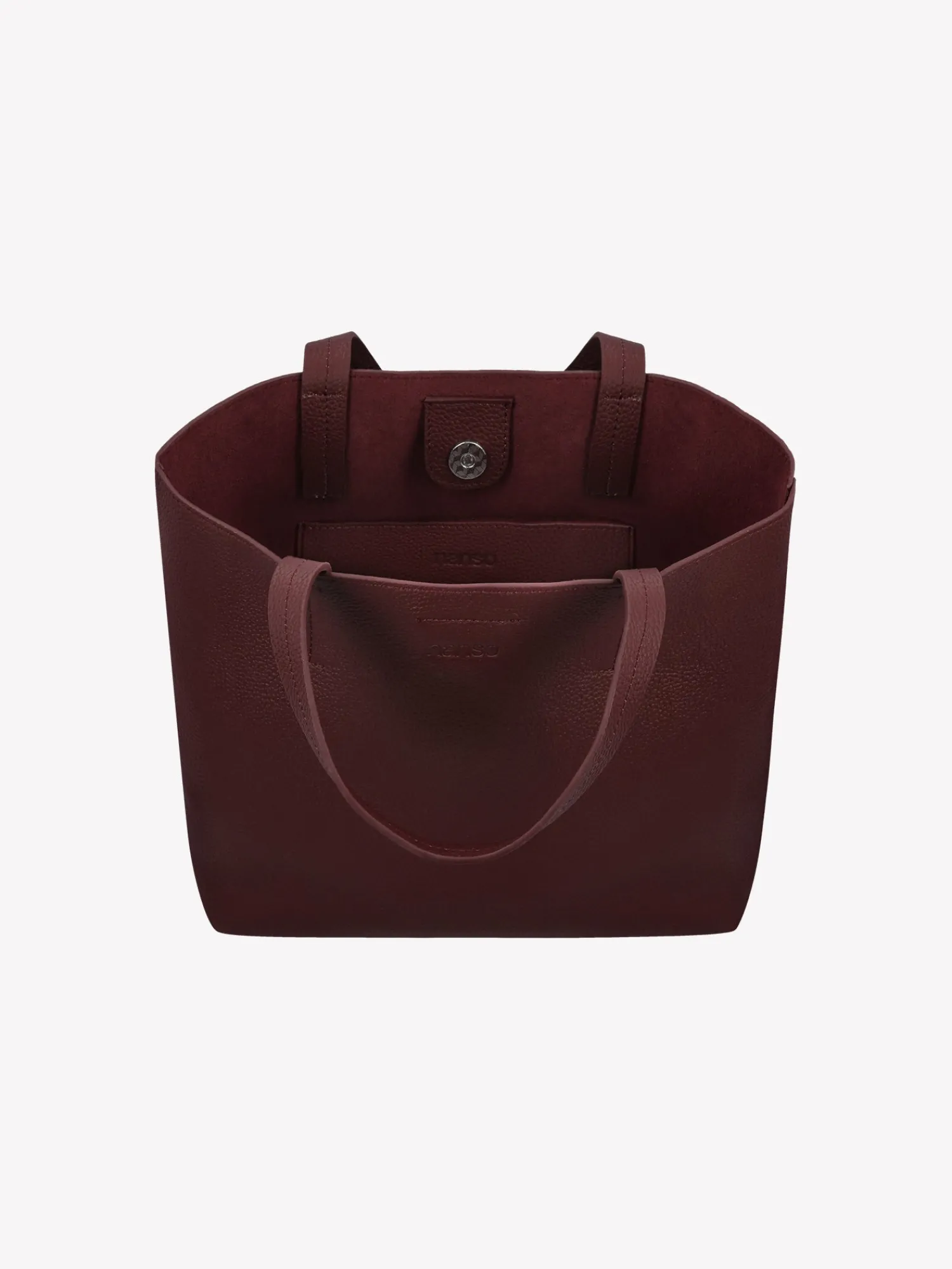 Ajaton, käytännöllinen ja minimalistisen tyylikäs – tumma viininpunainen Naru Tote- nahkalaukku hurmaa monikäyttöisyydellään. Upea tote bag- tyylinen laukku kulkee vaivattomasti mukana arjen kiireissä aamusta iltaan.