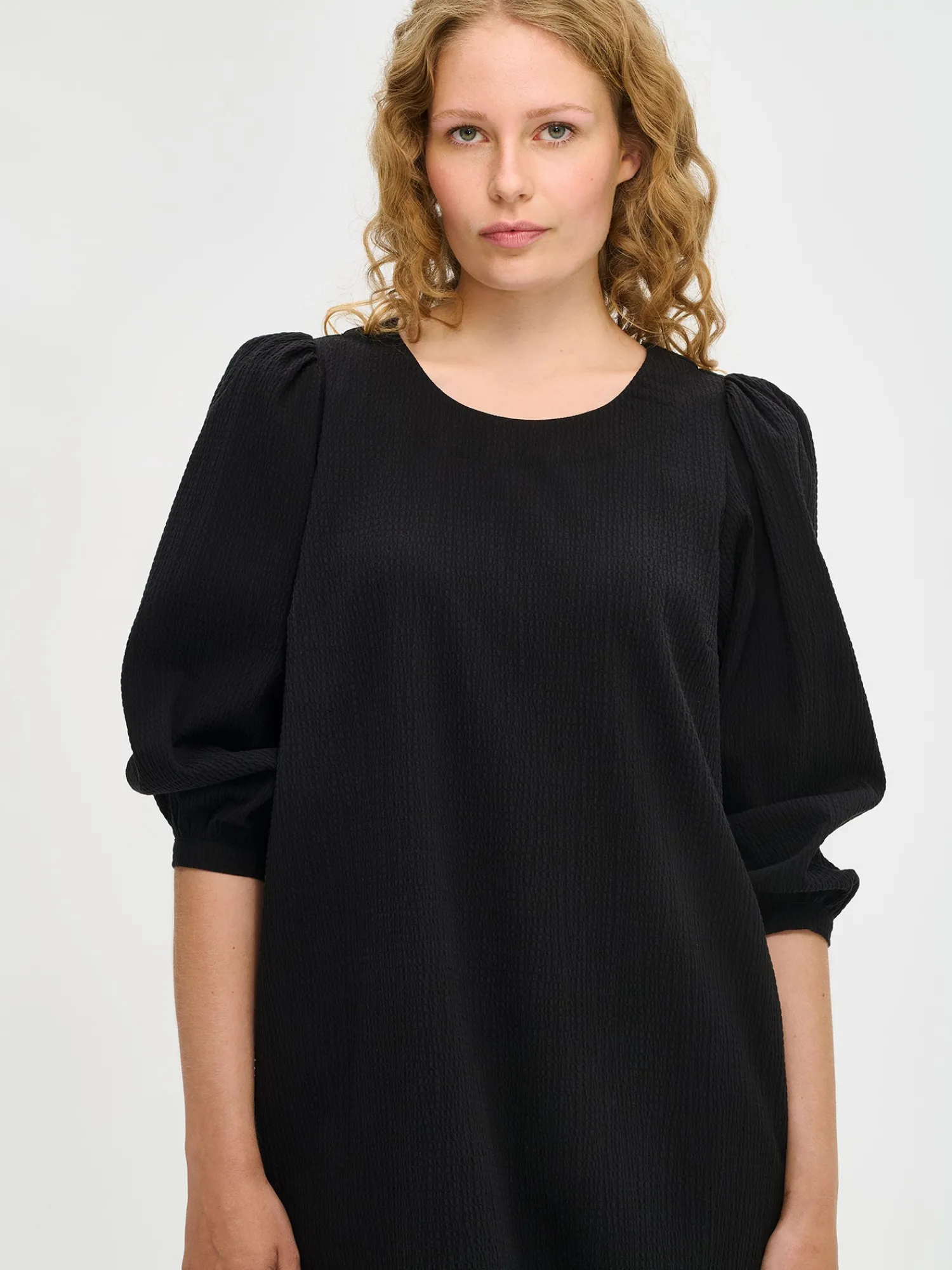 Naisten yksivärinen Bianca-mekko. Mekossa on alavaralla viimeistelty pyöreä pääntie. 3/4 pituiset hihat poimuttuvat runsaasti olalla ja säädettävän listan yläpuolelta. Mekon sivuissa on taskut. Pituus koossa 38 on noin 95 cm. Tuote on valmistettu laadukkaasta ja ryhdikkäästä kudotusta puuvillakankaasta, jossa on hieman elastaania antamassa joustoa. Ajaton valinta, johon haluat pukeutua aina uudelleen.