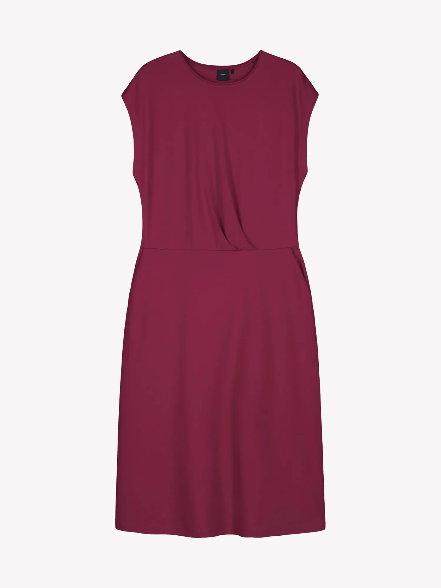 Naisten ajaton viininpunainen Elegia-mekko. Kaunis ja mukava mekko sopii moniin tilanteisiin – erityisesti pikkujoulukauden juhliin. Mekossa on pyöreä pääntie, holkkihihat, taskut ja edessä vyötäröllä laskokset. Mekon pituus koossa M on noin 115 cm. Materiaali on miellyttävän tuntuista interlock-neulosta.