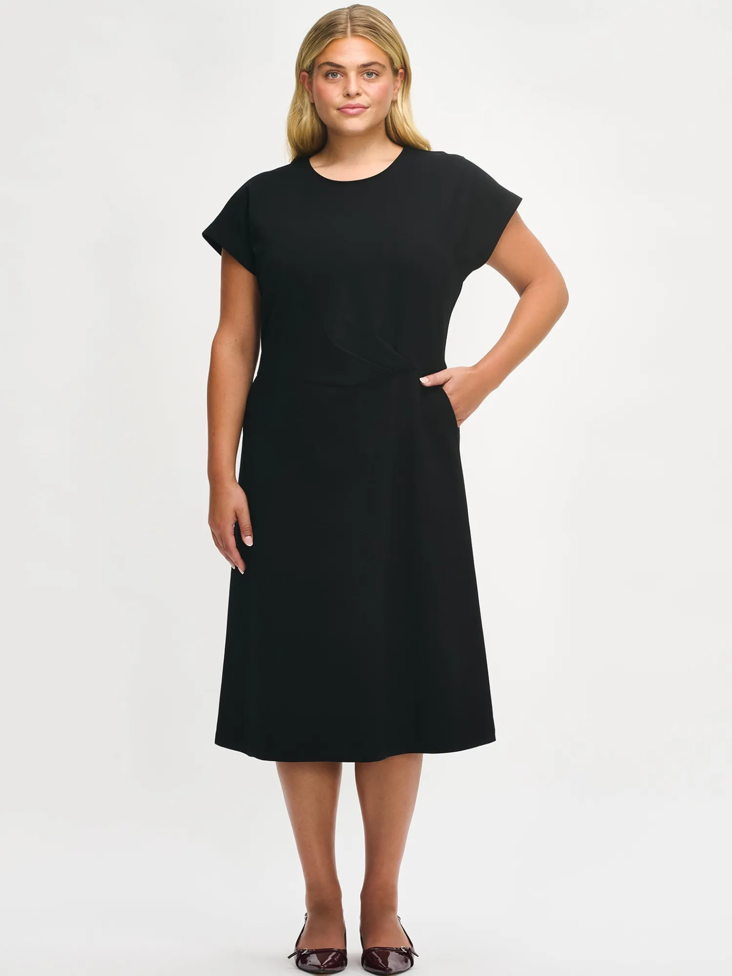 Naisten ajaton musta Elegia-mekko. Kaunis ja mukava mekko sopii moniin tilanteisiin – erityisesti pikkujoulukauden juhliin. Mekossa on pyöreä pääntie, holkkihihat, taskut ja edessä vyötäröllä laskokset. Mekon pituus koossa M on noin 115 cm. Materiaali on miellyttävän tuntuista interlock-neulosta.