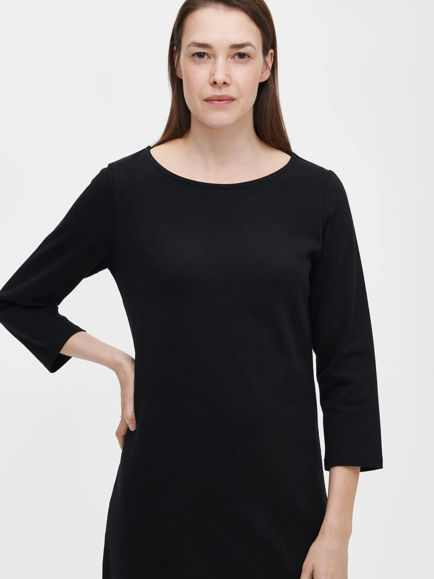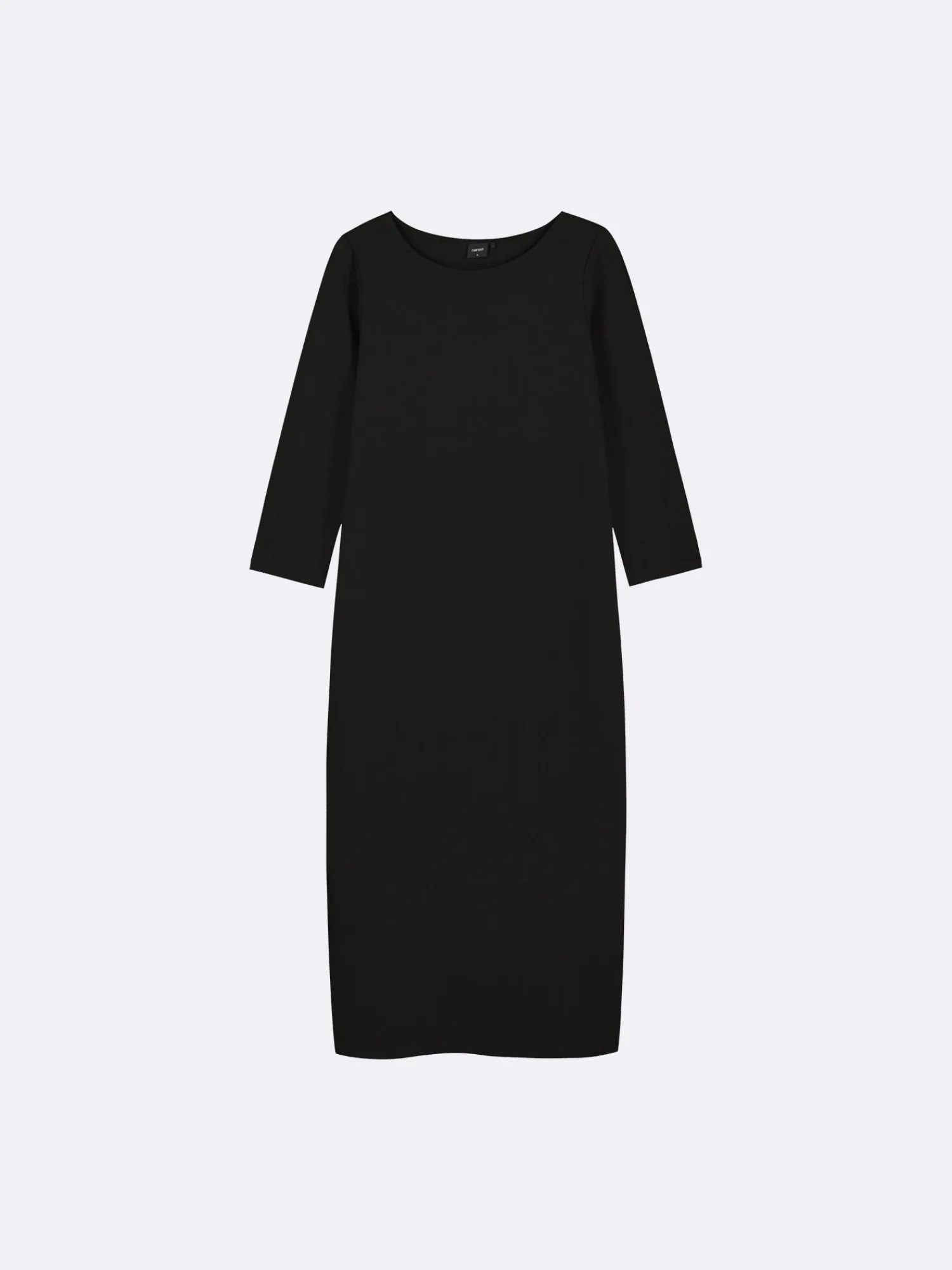 Naisten klassinen ja tyylikäs musta Forma-mekko. Istuva mekko on tyylikäs valinta arkeen. Mekon voi kerrostaa lämpimän neulepaidan kanssa viileämmällä säällä. Istuvassa mekossa on kantilla viimeistelty venepääntie ja 3/4 pituiset hihat. Mekon pituus koossa M on noin 130 cm. Materiaali on miellyttävän tuntuista ja helppohoitoista puuvillaneulosta. Materiaalille on ominaista 3-5% kutistuminen ensimmäisessä pesussa. Pesun jälkeen muotoile tuote kosteana.