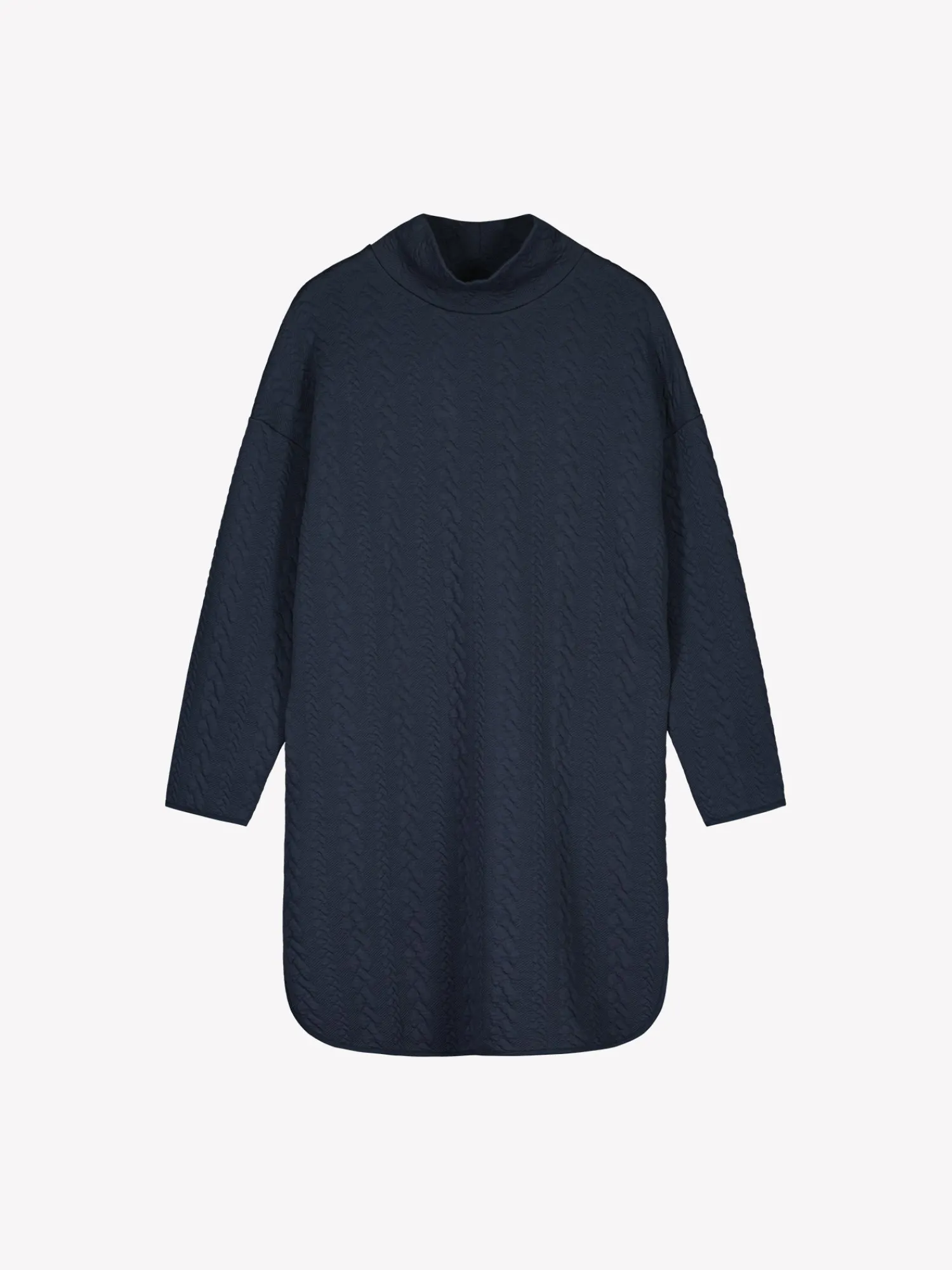 Naisten mukava tummansininen Letti-mekko poolokauluksella. Mekossa on pudotettu olkalinja, täyspitkät hihat ja sivutaskut. Helmassa on pyöristetyt halkiot. Mekon pituus koossa M on noin 97 cm. Ryhdikäs palmikkomaisesti pintakuvioitu materiaali on miellyttävää puuvilla-elastaanineulosta. Materiaalille on ominaista 3-5% kutistuminen ensimmäisessä pesussa.