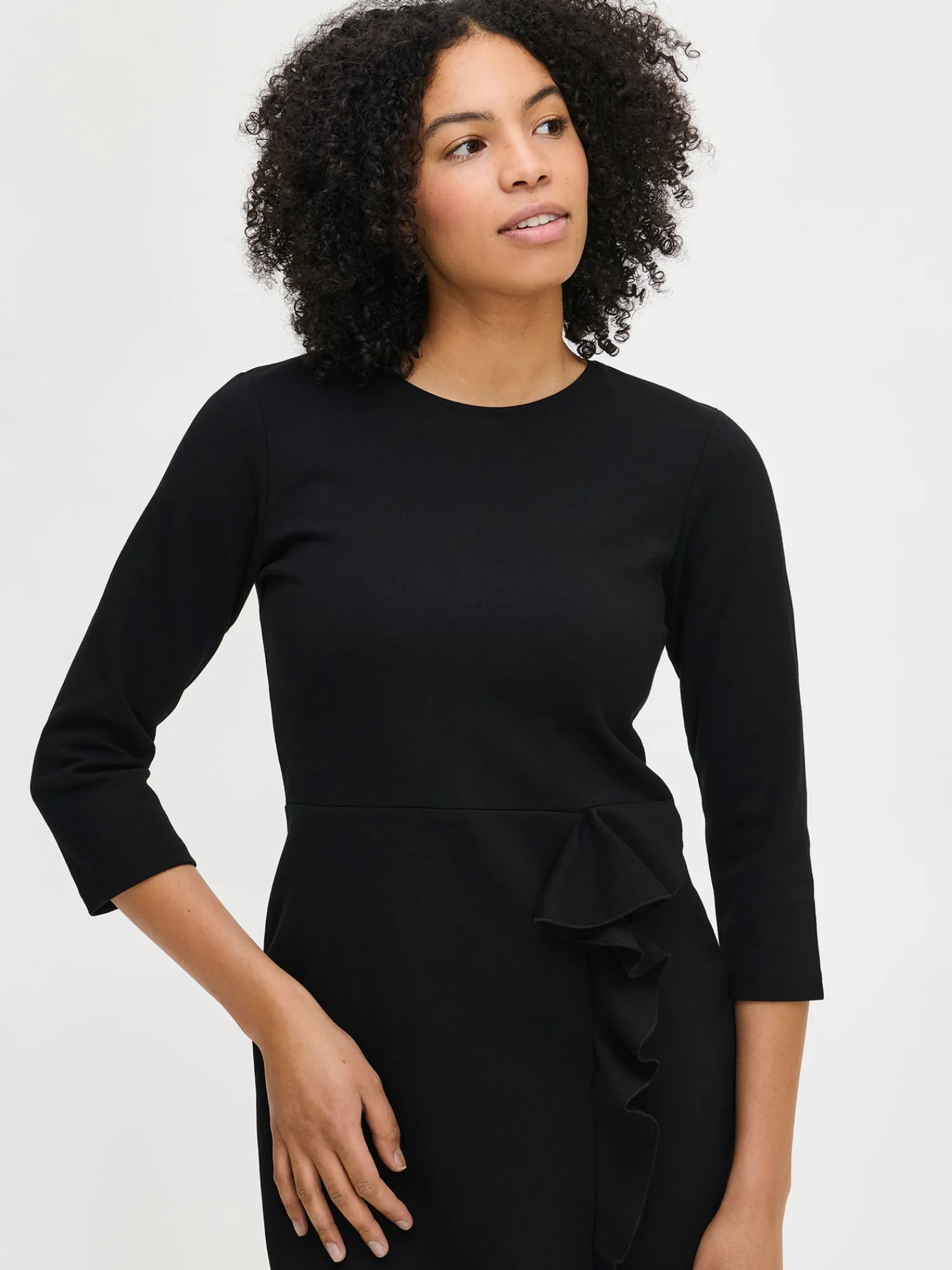 Naisten ajaton yksivärinen Opera-mekko. Istuvassa mekossa on pyöreä pääntie, poikkileikkaussauma vyötäröllä sekä 3/4-pituiset hihat. Suoralinjaisessa helmassa on halkio ja kaunis frilla. Pituus koossa M on noin 110 cm. Materiaali on miellyttävän tuntuista, paksumpaa interlock-neulosta.