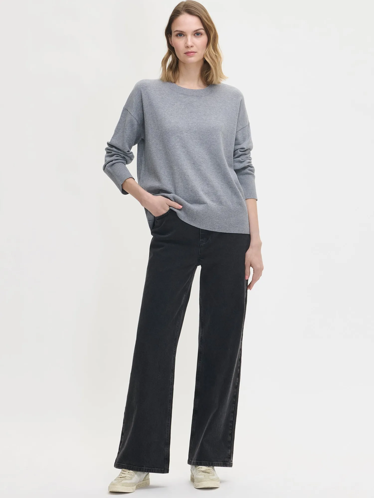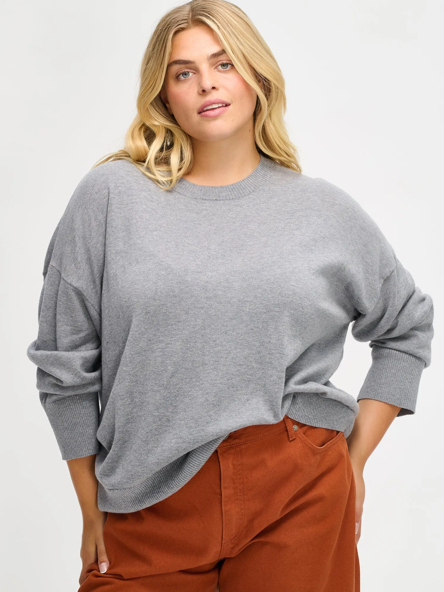 Naisten vaaleanharmaa laatikkomallinen Villis-neulepusero. Pehmeä villapaita on syksyn luottovaate. Neulepuserossa on pyöreä resoripääntie, pudotettu olkalinja ja täyspitkät hihat. Helmassa ja hihansuissa on leveä resori. Puseron pituus koossa M on noin 62 cm. Materiaali on laadukasta merinovillan ja puuvillan sekoitetta. Tuotteen valmistuksessa on käytetty mulesing-vapaata merinovillaa. Neuleen hoito-ohjeet löydät