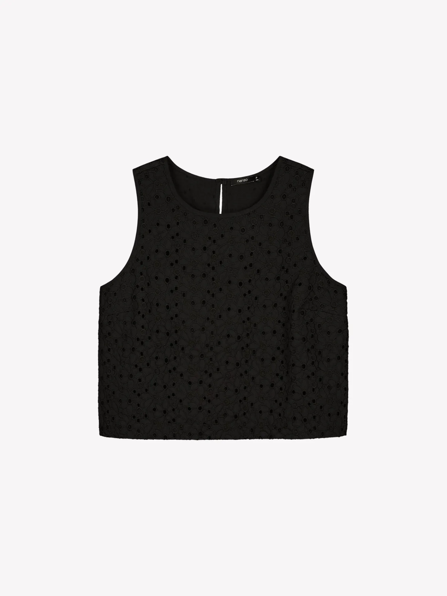 Naisten kaunis musta brodeerattu Nuppu-pusero. Puserossa on kantilla viimeistellyt käden tiet sekä pyöreä pääntie. Edessä on rintamuotolaskokset ja takana halkio napilla. Puseron pituus koossa 38 on noin 50 cm. Materiaali on kudottua puuvilla-popliinikangasta, jossa on kaunis brodeeraus. Materiaali on kevyttä ja hengittävää. Puserossa on ohut puuvillavuori.