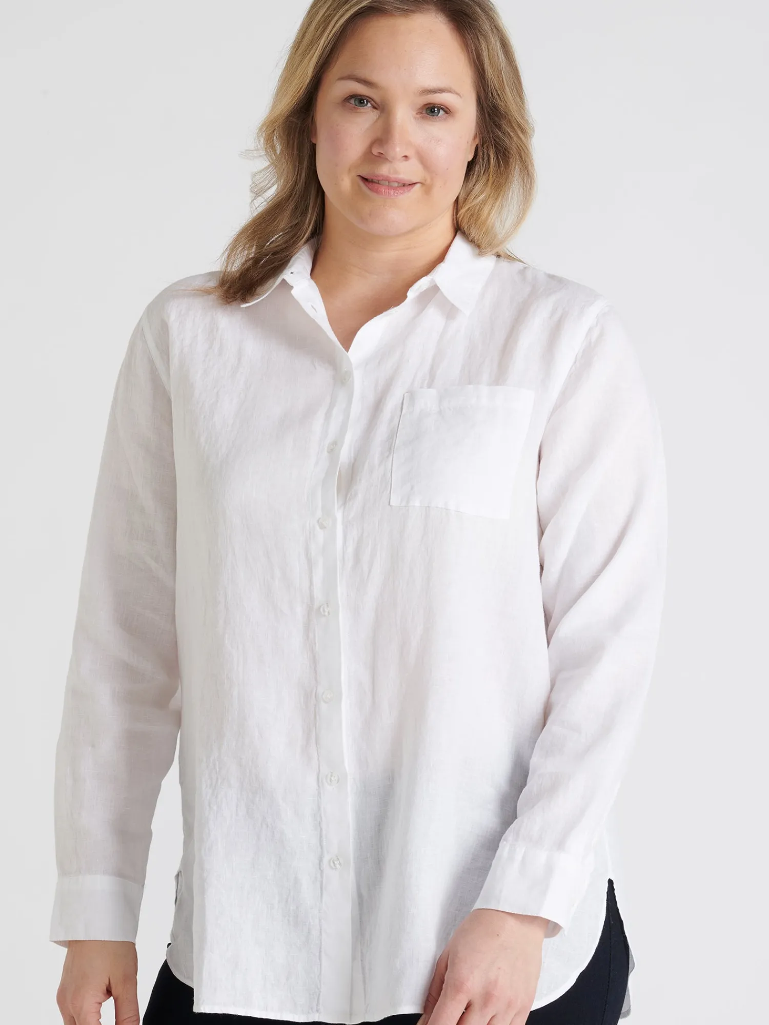 Naisten rento pitkähihainen valkoinen Pellava-paitapusero. Klassinen kauluspaita on todellinen vaatekaapin kulmakivi. Ajaton kauluspaita hurmaa monikäyttöisyydellään ja siksi se on varma valinta kerta toisensa jälkeen. Tyylikkäässä pellavapaidassa on napit edessä ja rintatasku. Puseron pituus koossa 38 on noin 75 cm. Materiaali on kudottua pellavakangasta, joka on kestävää ja hengittävää. Pellavalle on ominaista luonnollinen pieni rypistyminen. Tuote on esipesty tuotannossa, joten se ei kutistu ensimmäisessä pesussa.