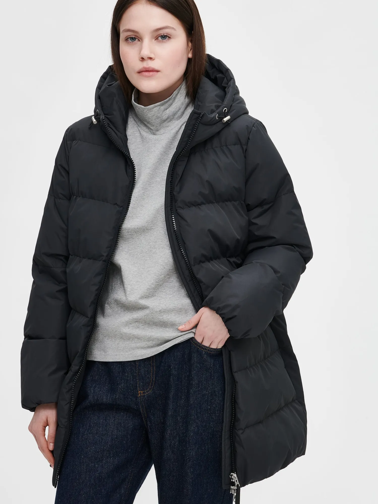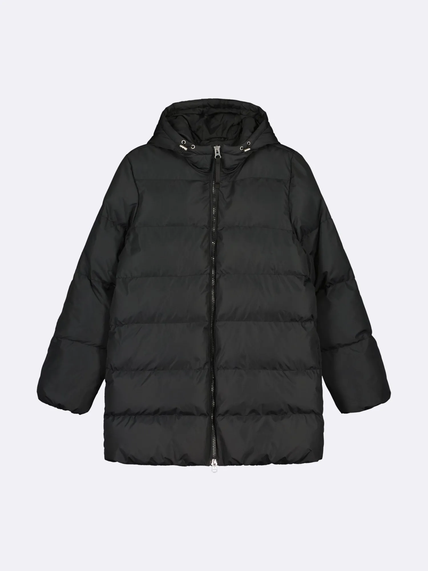 Lämmin ja muhkea musta Lumi-toppatakki miellyttävän kevyellä vanuvuorella. Takissa on lämmin huppu, jossa on kiristysmahdollisuus. Takin hihansuissa ja helmassa on kuminauhareunus. Toppatakissa on sivutaskut ja tuulilistallinen kaksisuuntainen vetoketjukiinnitys. Takin pituus koossa M on noin 85 cm. Materiaali on laadukasta, vettähylkivää ja kierrätyspolyesteria. Toppatakissa on Sorona-vanu.