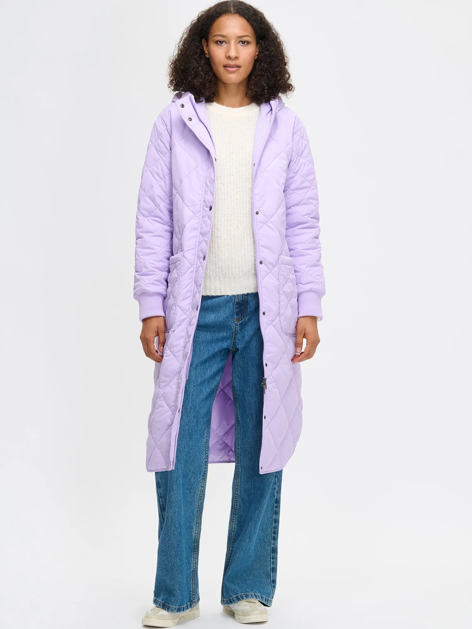 Naisten rennon tyylikäs lila Maxi Hood-tikkitakki kevyellä vanulla ja lämpimällä hupulla. Ajaton tikkitakki on ehdoton vaatekaapin kulmakivi ja luottovaate, joka sopii kaudesta toiseen. Hupullinen tikkitakki on täydellinen valinta välikauteen, sillä se on kevyt ja lämmin vaihtelevassa säässä. Pitkässä hupullisessa takissa on edessä kaksisuuntainen vetoketju ja nepparikiinnitteinen tuulilista. Hupun reunassa ja hihansuissa on mukava neulosresori. Takissa on pudotettu olkalinja, päällitaskut ja pyöristetty helma. Takin pituus koossa M on noin 115 cm. Materiaali on laadukasta vettähylkivää kierrätyspolyesteria ja takissa on Sorona-vanu.