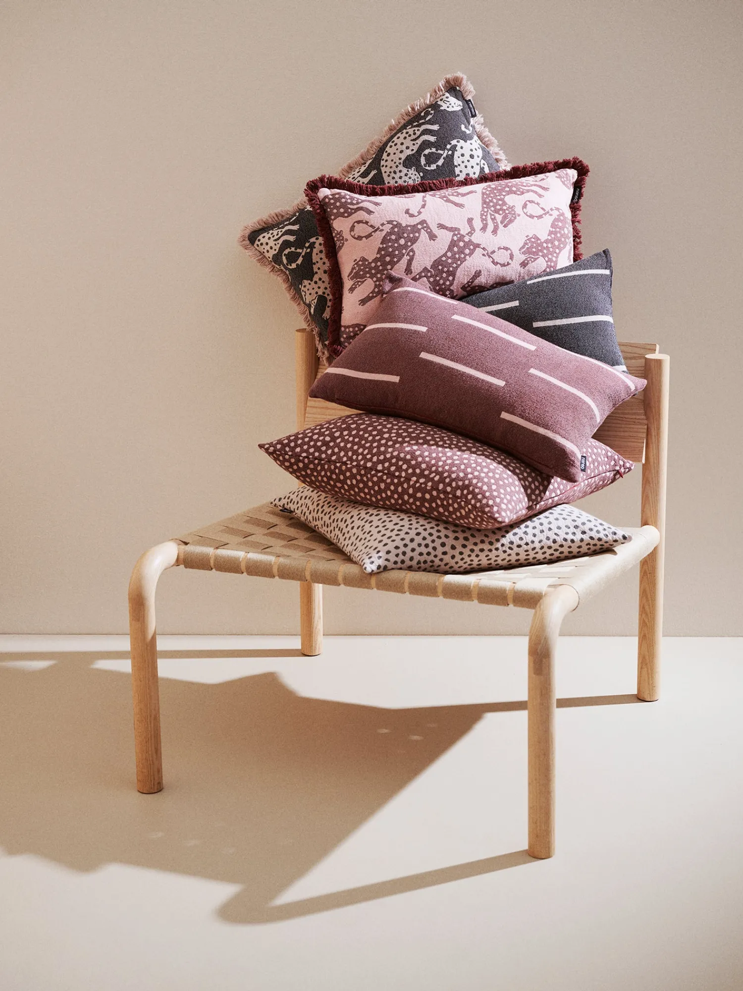 Leopardikuvioinen Hapsu-tyynyliina vaaleanpunaisessa sävyssä on rohkea valinta, joka tuo sisustukseen näyttävää ilmettä. Kestävä puuvillamateriaali ja jacquard-kudonta takaavat laadun, kun taas reunoissa olevat punaiset hapsut viimeistelevät kokonaisuuden. Vetoketju alareunassa tekee tyynyn vaihtamisesta vaivatonta. Kompakti 50 x 30 cm koko sopii täydellisesti tuomaan särmää sisustukseen.