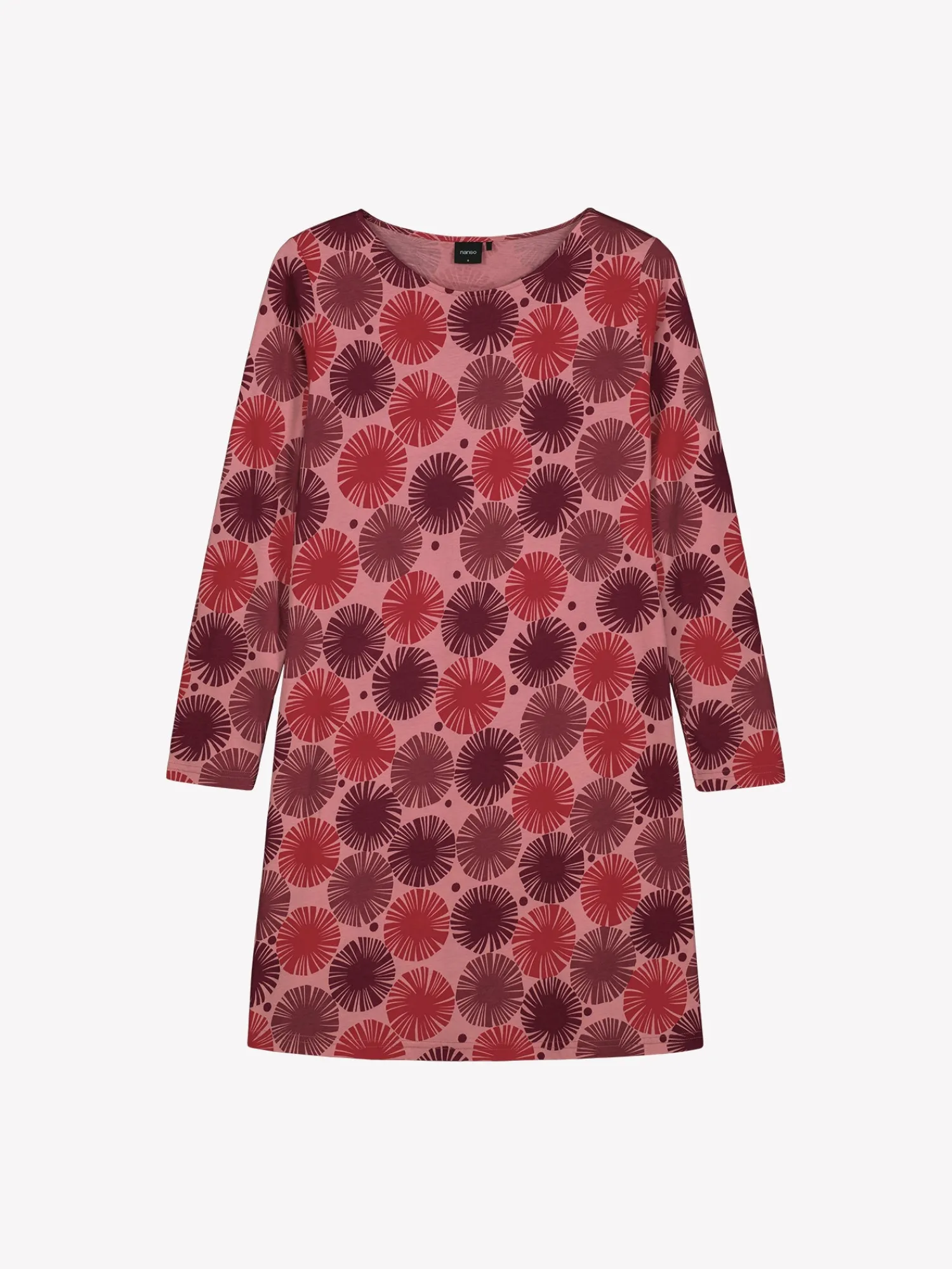 Naisten kuosillinen Amara-yöpaita pitkillä hihoilla ja ovaalilla pääntiellä. Yöpaidan pituus koossa M on noin 95 cm. Materiaali on laadukasta, iholla miellyttävän pehmeältä tuntuvaa ja helppohoitoista puuvilla-modaalia, joka pysyy hyvänä pesusta toiseen. Kaunis kuosi ja pehmeä materiaali tekevät tästä yöpaidasta täydellisen valinnan rentoutumiseen ja levollisiin uniin.
