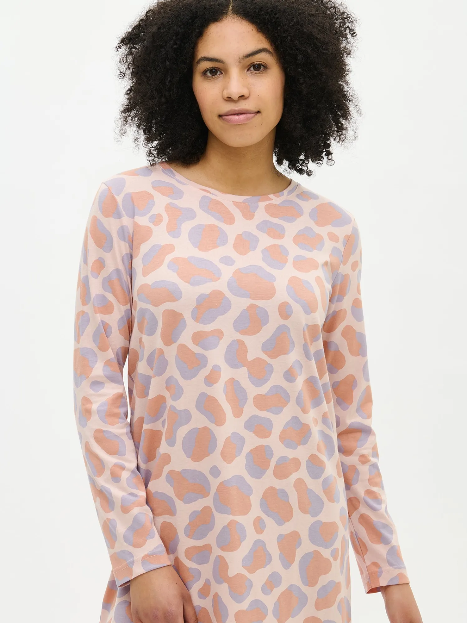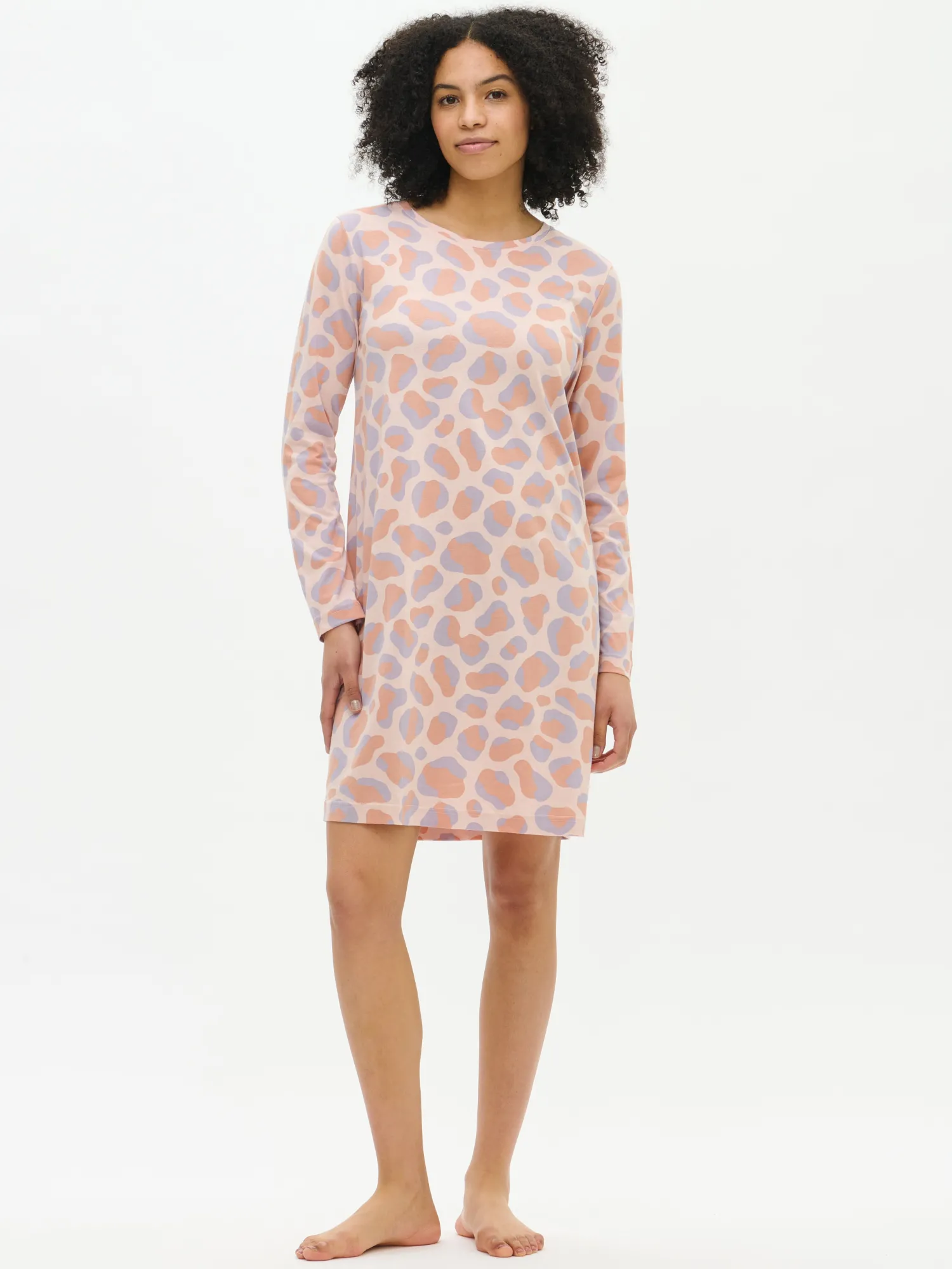 Naisten kuosillinen vaaleanpunainen Pantteri-yöpaita pitkillä hihoilla ja pyöreällä pääntiellä. Yöpaidan pituus koossa M on noin 95 cm. Materiaali on laadukasta, iholla miellyttävän pehmeältä tuntuvaa ja helppohoitoista puuvilla-modaalia, joka pysyy hyvänä pesusta toiseen. Näyttävä Pantteri-kuosi tuo asuun leikkisää ilmettä. Tämä yöpaita on suunniteltu kestämään arjen käyttöä.