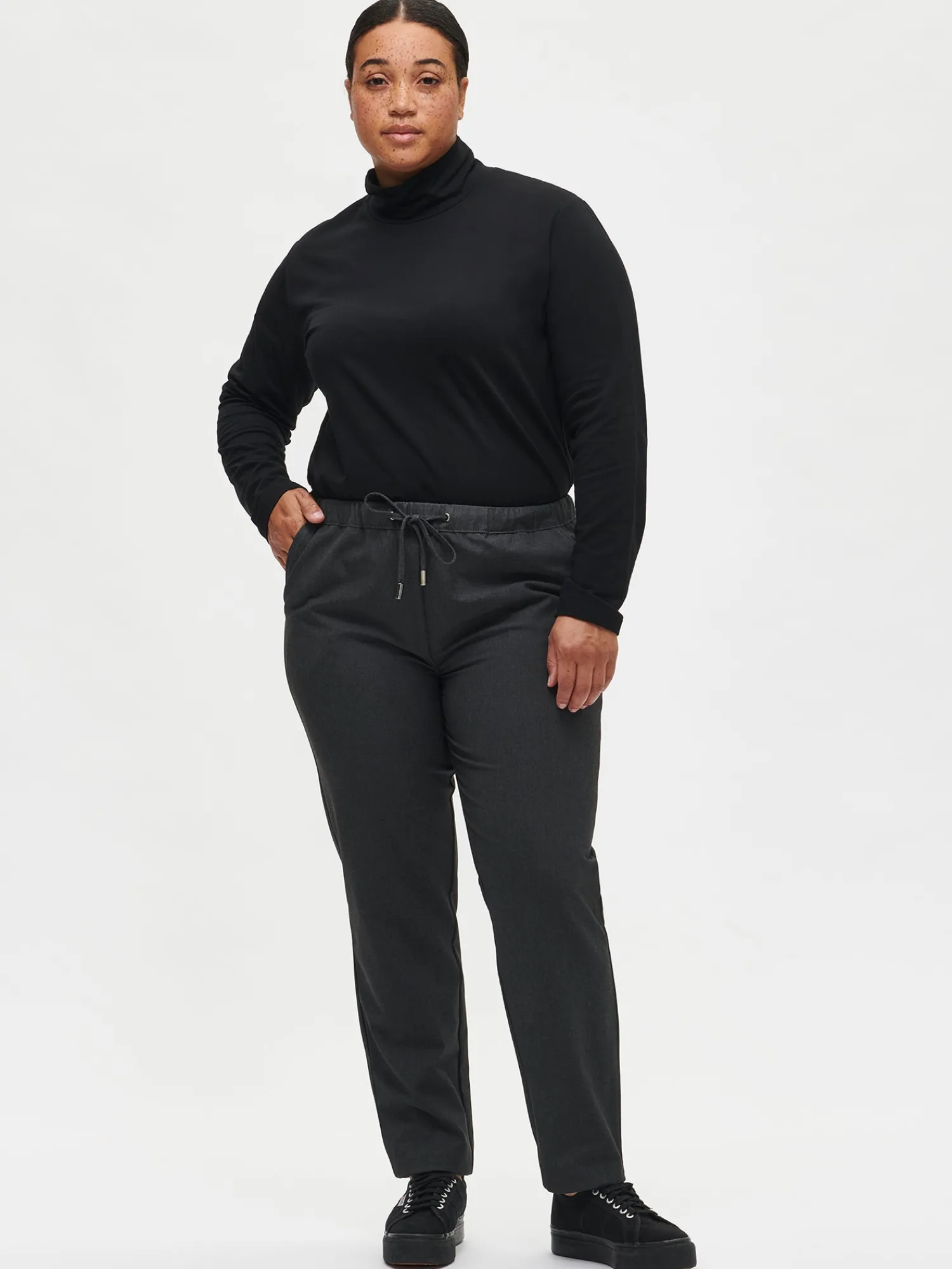Naisten musta Mari-poolopusero. Istuva poolo on ajaton klassikko, johon haluaa pukeutua vuodesta toiseen. Monikäyttöisen poolon voi pukea myös lyhythihaisen mekon tai paidan alle. Istuvassa matalakauluksellisessa poolopuserossa on täyspitkät hihat. Puseron pituus koossa M on noin 65 cm. Poolon materiaali on miellyttävää ja joustavaa luomupuuvilla-elastaani-neulosta.