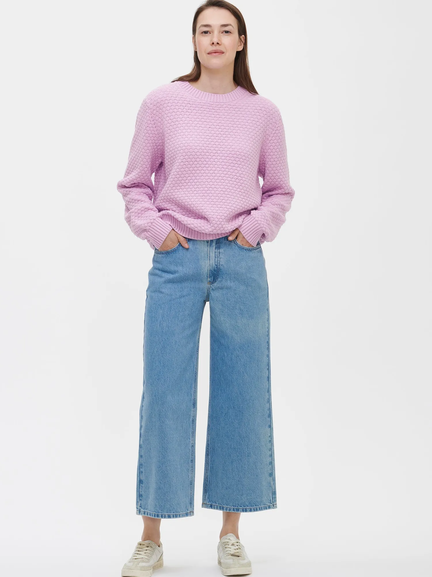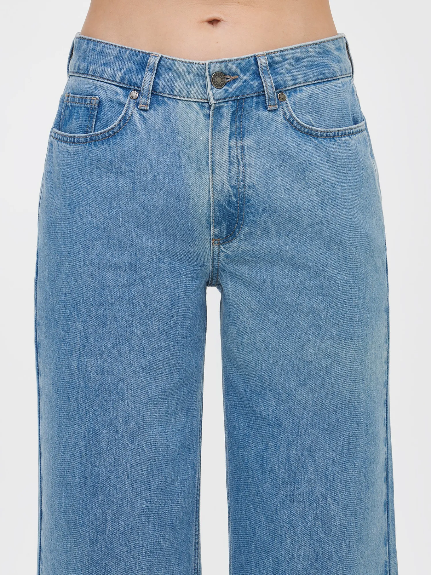 Naisten trendikkäät vaaleansiniset Cropped Levee-farkut, joissa on normaalikorkuinen vyötärö. Trendikkäästi vajaamittaiset Levee-farkut ovat helppo ja tyylikäs valinta arkeen. Farkuissa on vyötärökaitale, edessä vetoketju ja nappikiinnitys. Rennoissa farkuissa on taskut edessä ja takana sekä levenevät, vajaamittaiset lahkeet. Lahkeen sisäpituus koossa 38 on noin 65 cm. Materiaali on kudottua twillsidoksista puuvilla-denimkangasta. 20% kankaaseen käytetystä puuvillasta on kierrätettyä.