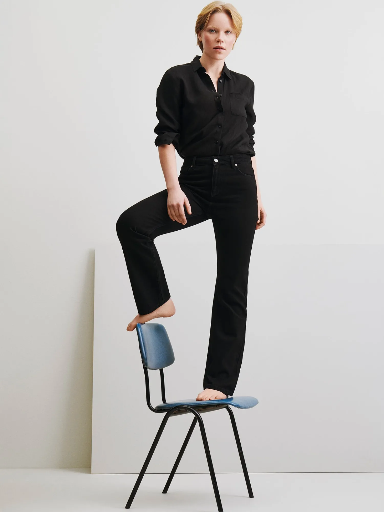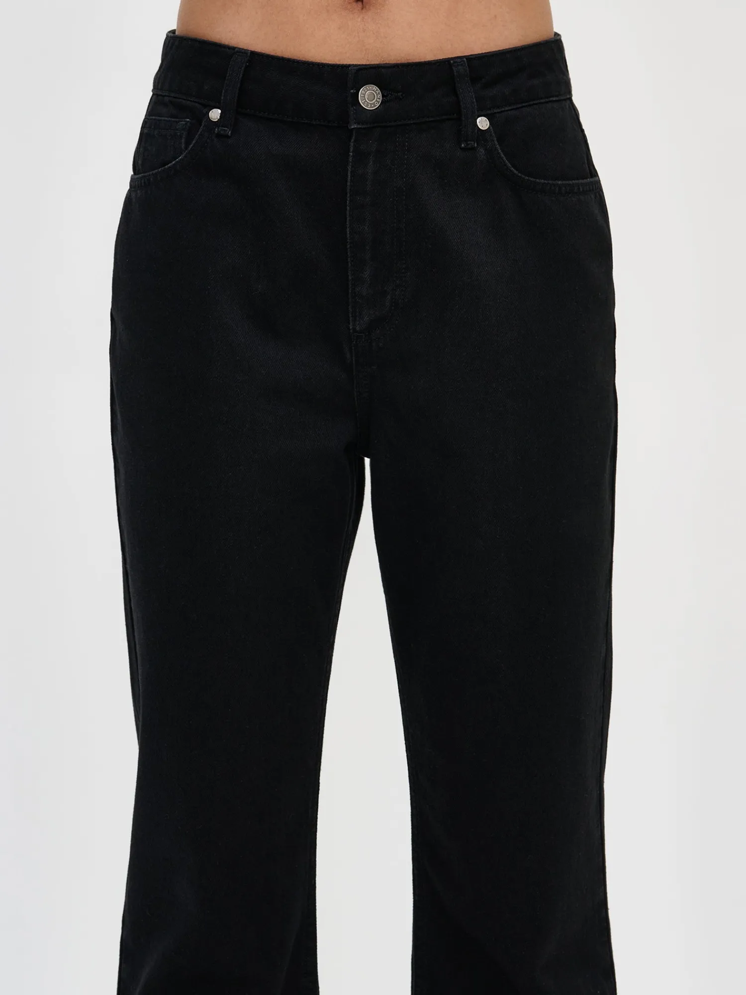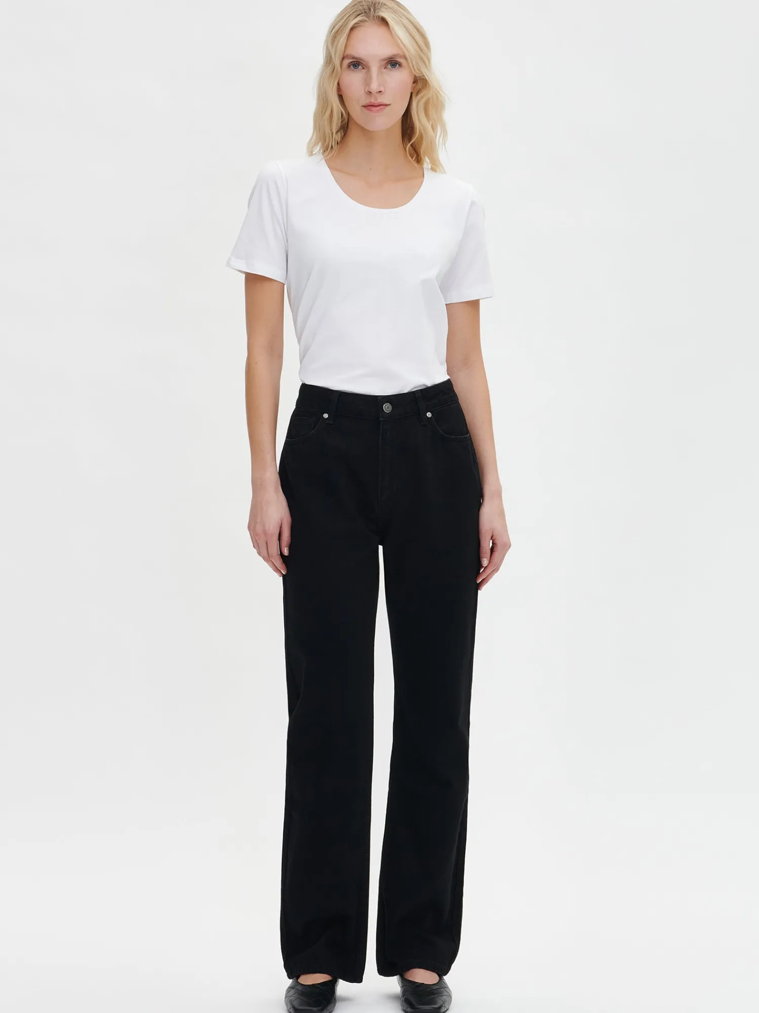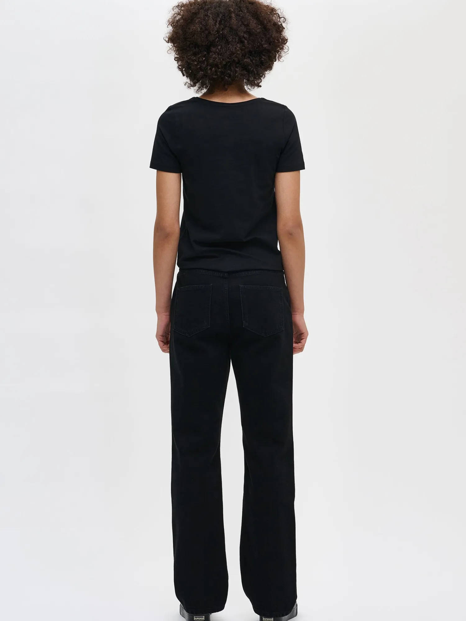 Naisten rennot mustat Suora-farkut, joissa on normaalikorkuinen vyötärö. Klassiset ja mukavat suorat farkut ovat monen asukokonaisuuden runko. Hyvin istuvat farkut ovat vaatekaapin luottovaate, johon on aina ihanaa pukeutua. Suora-farkuissa on vyötärökaitale, edessä vetoketju ja nappikiinnitys. Farkuissa on taskut edessä sekä takana ja täyspitkät suorat lahkeet. Farkkujen lahkeen sisäpituus koossa 38 on noin 80 cm. Materiaali on kudottua twillsidoksista puuvilla-denimkangasta. 20% kankaaseen käytetystä puuvillasta on kierrätettyä.