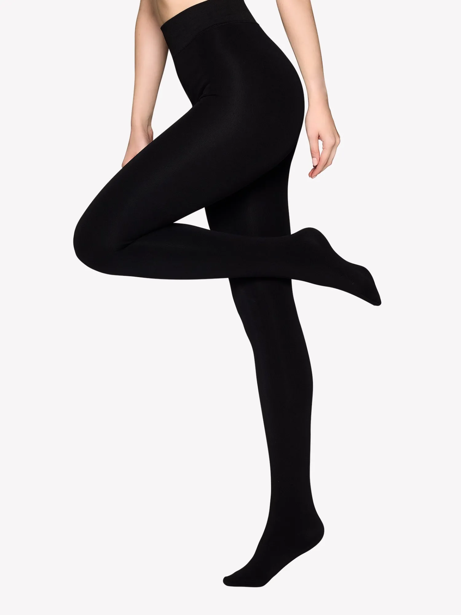 Voguen mustat samettivuoratut thermosukkahousut. Sukkahousujen superpehmeä samettinen vuori pitää sinut lämpimänä säässä kuin säässä. Nämä ovat täydellinen osa talvivaatetusta.