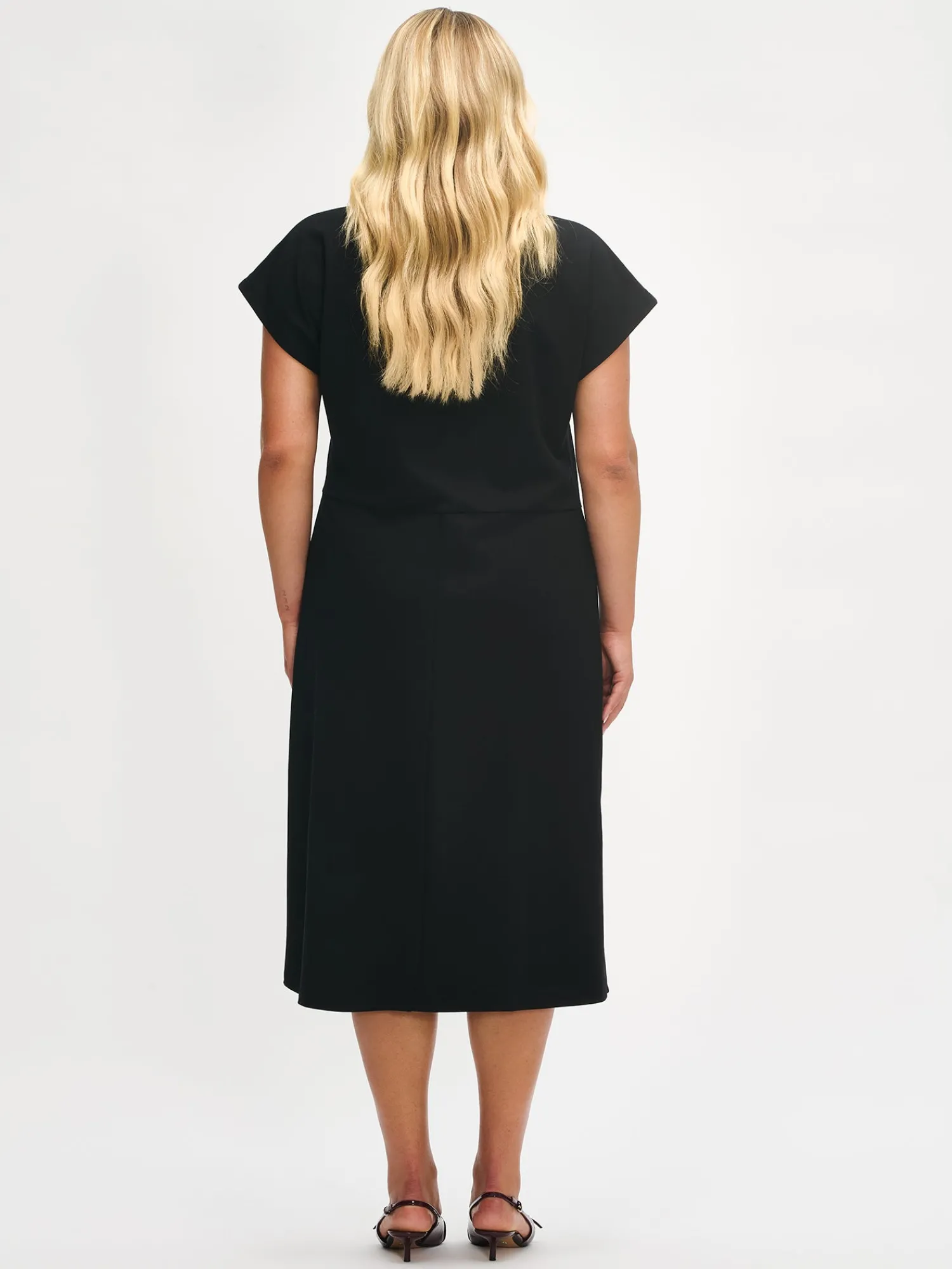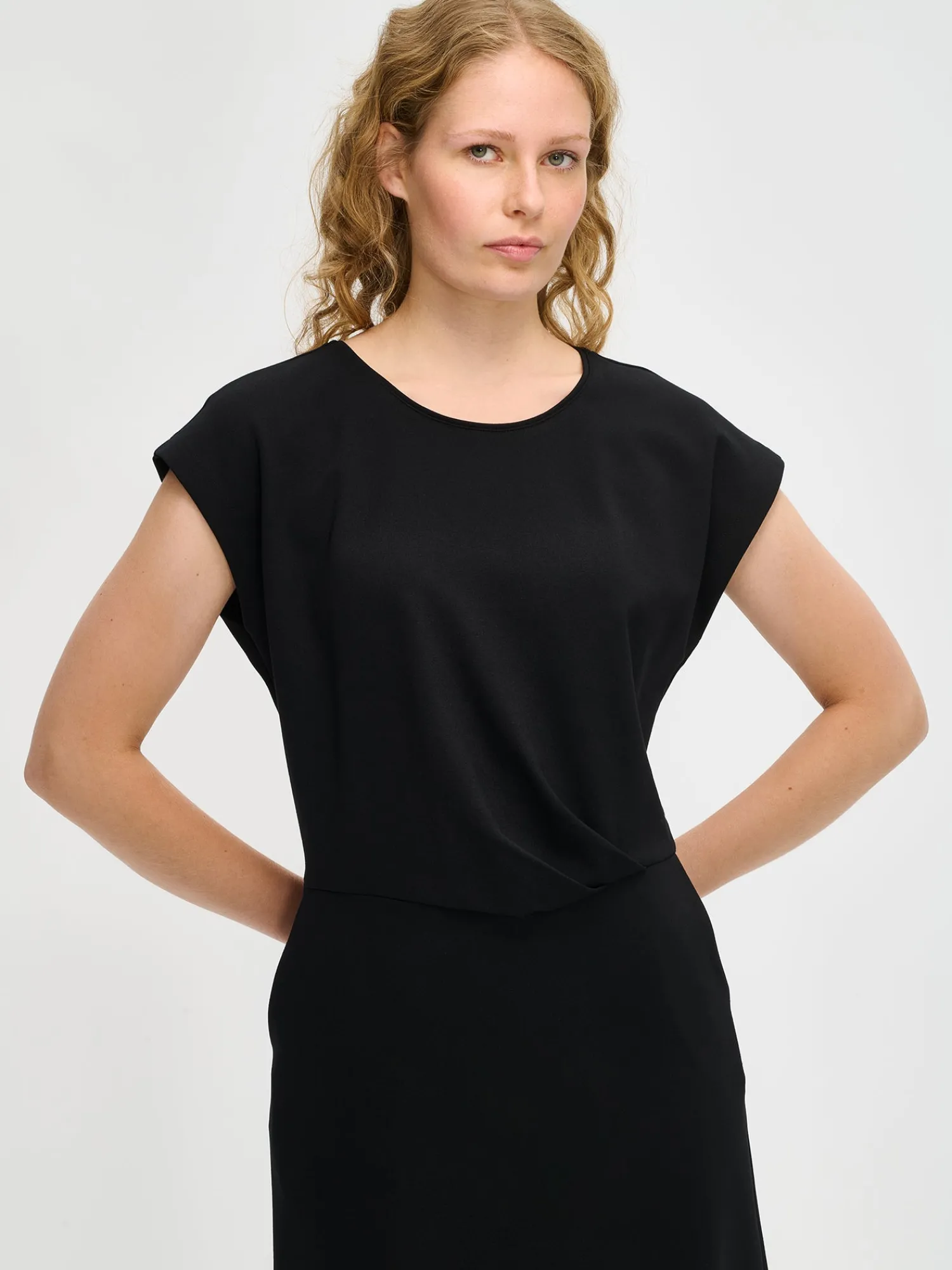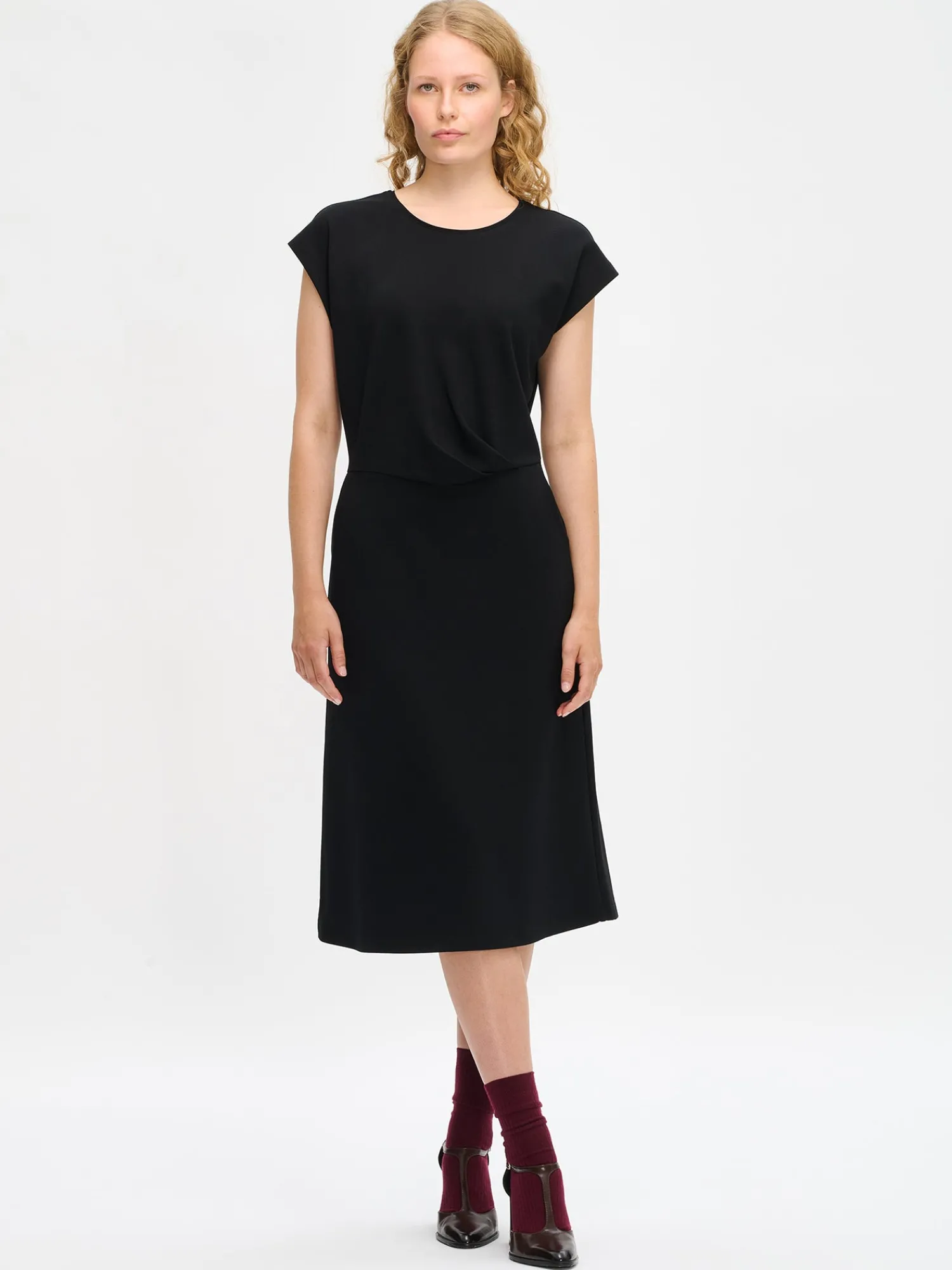 Naisten ajaton musta Elegia-mekko. Kaunis ja mukava mekko sopii moniin tilanteisiin – erityisesti pikkujoulukauden juhliin. Mekossa on pyöreä pääntie, holkkihihat, taskut ja edessä vyötäröllä laskokset. Mekon pituus koossa M on noin 115 cm. Materiaali on miellyttävän tuntuista interlock-neulosta.