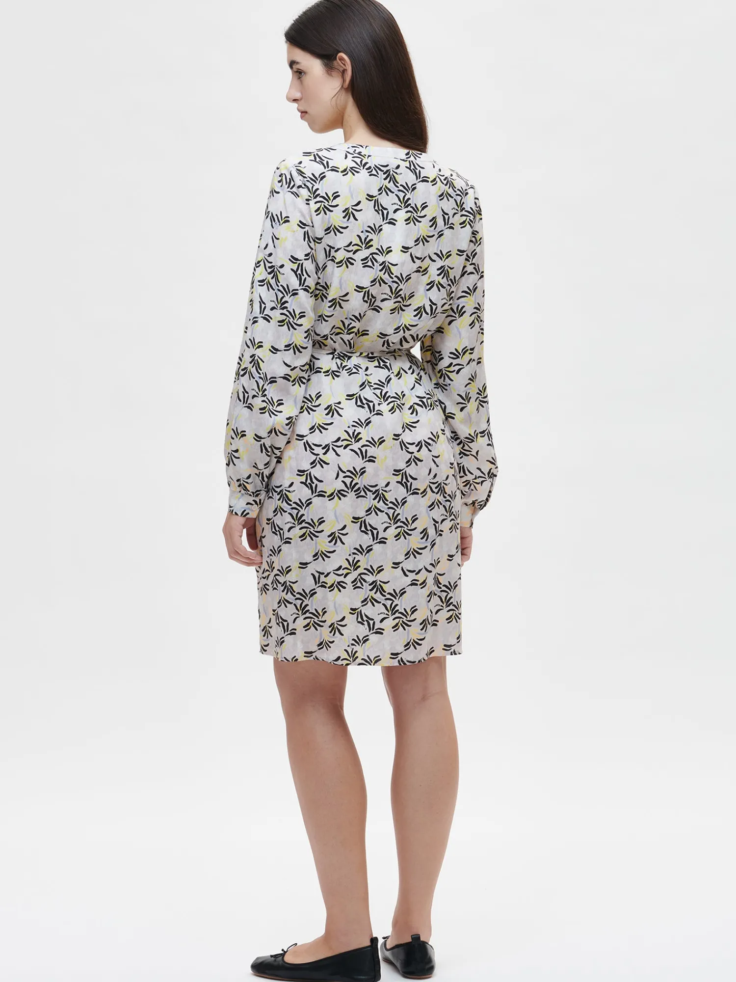 Naisten kuosillinen monivärinen Huiskat-mekko. Mekossa on täyspitkät hihat, jotka poimuttuvat kauniisti hihansuun listan yläpuolella. Mekossa on pystykaulus ja edessä pääntiellä pisaranmuotoinen nappihalkio. Mekon sivuissa on taskut ja edessä rintamuotolaskokset. Mekon vyötäröllä on irroitettava kapea vyö ja helma on kevyesti kellottuva. Mekon pituus koossa 38 on noin 98 cm. Materiaali on kevyttä ja läpikuultavaa miellyttävän tuntuista kudottua 100% Lyocell (TENCEL™) -kangasta. Materiaalille on ominaista 3-5% kutistuminen ensimmäisessä pesussa.