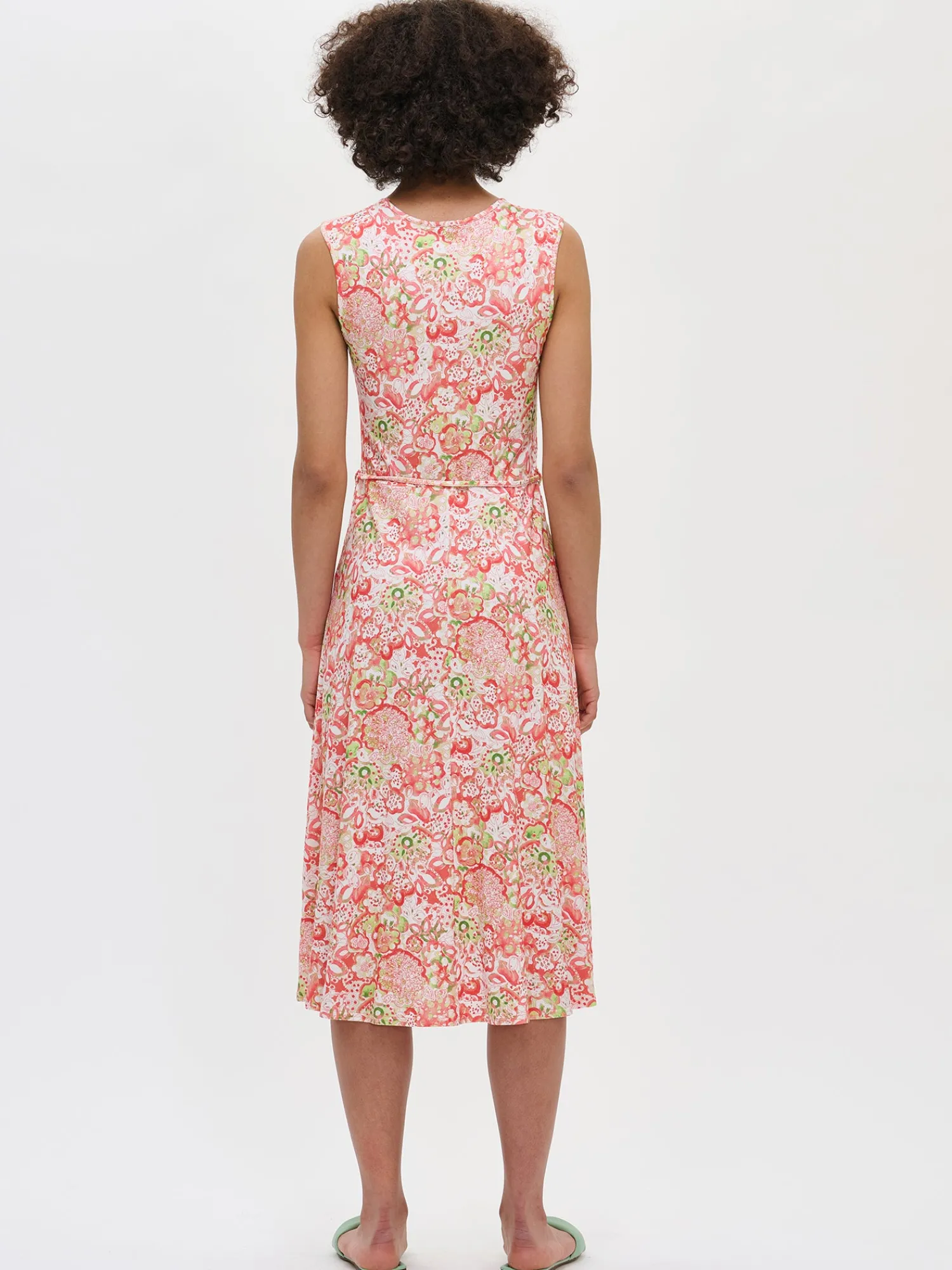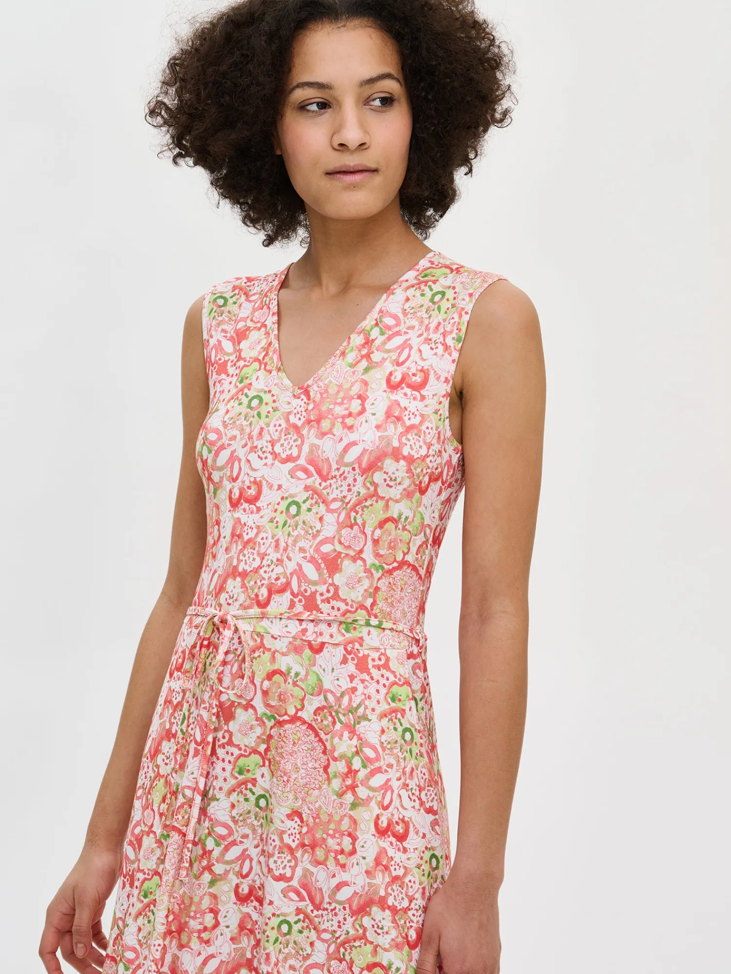 Naisten kuosillinen midimittainen Kreeta-trikoomekko. Istuvassa mekossa on kaunis v-pääntie ja kapea irrotettava vyö. Rento mekko on mukava päällä niin arjessa kuin juhlassakin. Mekon pituus koossa M on noin 115 cm. Materiaali on laadukasta ja miellyttävän tuntuista, ohutta viskoosi-elastaani-neulosta. Viskoosineulos on sähköistymätöntä ja helppohoitoista. Tuote on valmistettu LENZING™ ECOVERO™ -viskoosista. Materiaalille on ominaista 3-5% kutistuminen ensimmäisessä pesussa.