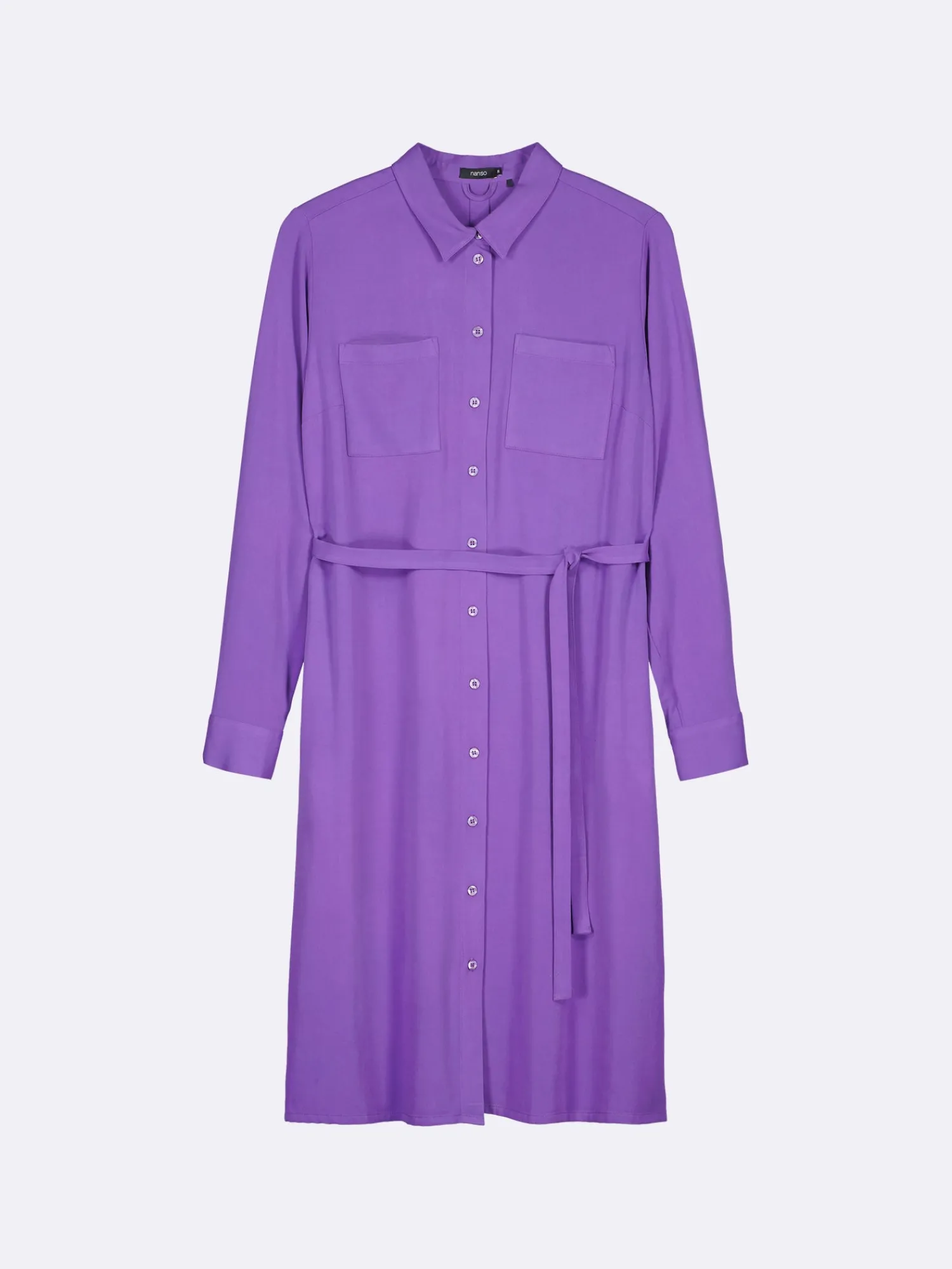 Naisten lila Raami-mekko. Kauluspaitamekko on vaatekaapin ajaton klassikko. Mekossa on edessä napitus, rintataskut, rintamuotolaskokset ja takana laskos. Mekossa on täyspitkät hihat, joiden hihansuissa on nappikalvosimet. Mukana tulee samasta materiaalista valmistettu kapea irtovyö. Mekon pituus koossa 38 on noin 110 cm. Kauniisti laskeutuvan puseron materiaali on laadukasta ja miellyttävän tuntuista twill sidoksista viskoosikangasta. Tuote on valmistettu LENZING™ ECOVERO™ -viskoosista. Materiaalille on ominaista 3-5% kutistuminen ensimmäisessä pesussa.