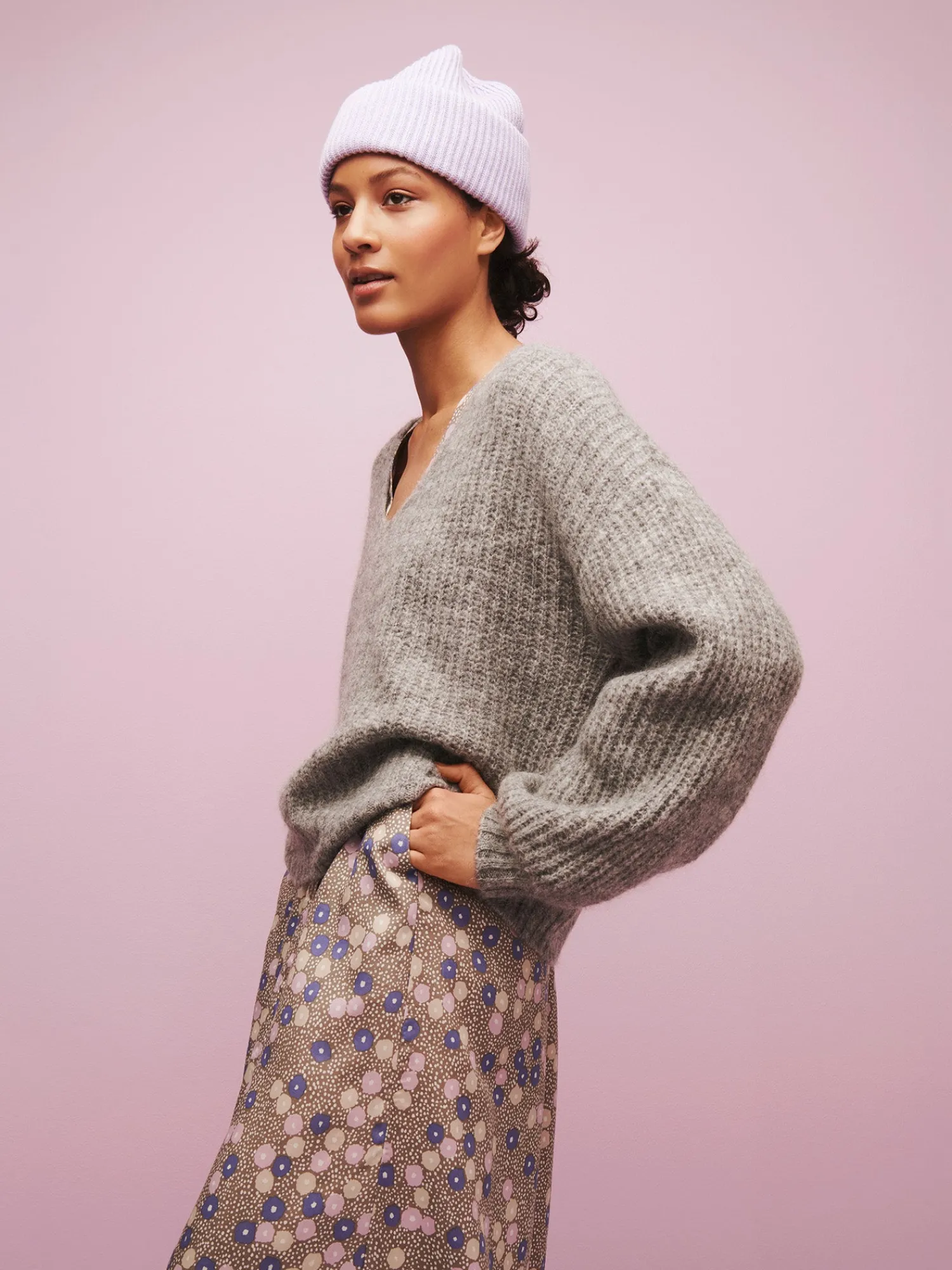 Leila on 180 cm pitkä ja hänellä on päällään tuotteesta koko 36. Mallin ympärysmitat ovat: rinta 80 cm, vyötärö 63 cm ja lantio 89 cm.