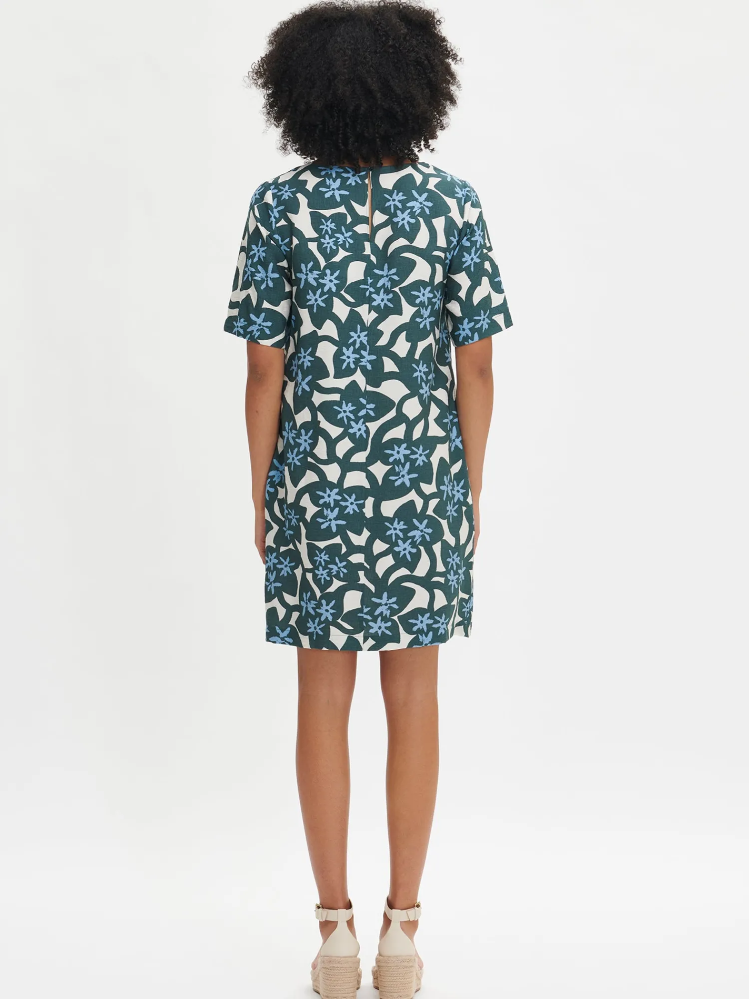 Naisten suoralinjainen kuosillinen vihreä Verna-mekko. Ihana värikäs kesämekko on mukava vaate niin arkeen kuin lomalle. Mekossa on kantilla viimeistelty ovaali pääntie, jonka takana on nappihalkio. Mekon väljät hihat ovat 2/4 pituiset ja sivuissa on taskut. Mekon pituus koossa 38 on noin 95 cm. Materiaali on kaunista eläväpintaista kudottua viskoosi-polyamidikangasta.
