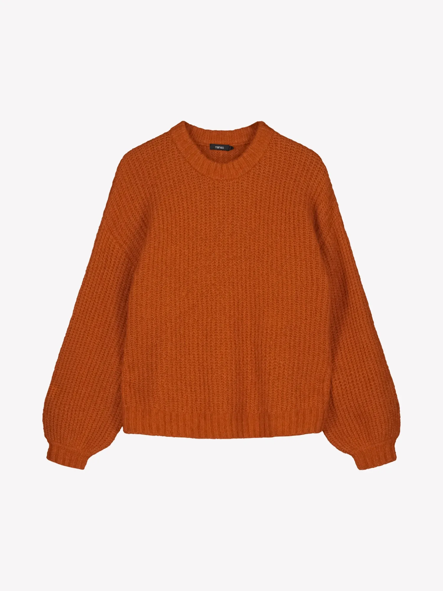 Naisten ylellinen ruskea Karamelli-neulepusero pyöreällä pääntiellä. Lämmin ja muhkea neulepusero on syksyn ehdoton suosikkivaate, sillä pehmeään neulepuseroon on aina ihanaa pukeutua. Neulepaidan neulos on sekoite, jossa on osaksi sertifioitua mohairia, sertifioitua villaa, polyamidia ja hieman elastaania. Muotoonneulotussa neulepuserossa on pyöreä pääntie ja täyspitkät hihat. Neulepuseron pituus koossa M on noin 59 cm. Neuleen hoito-ohjeet löydät .