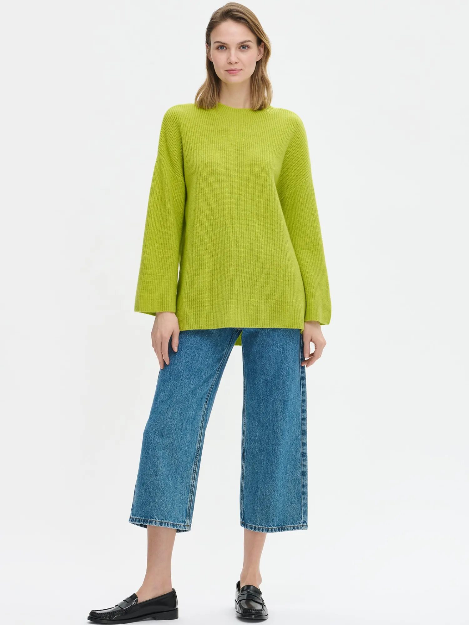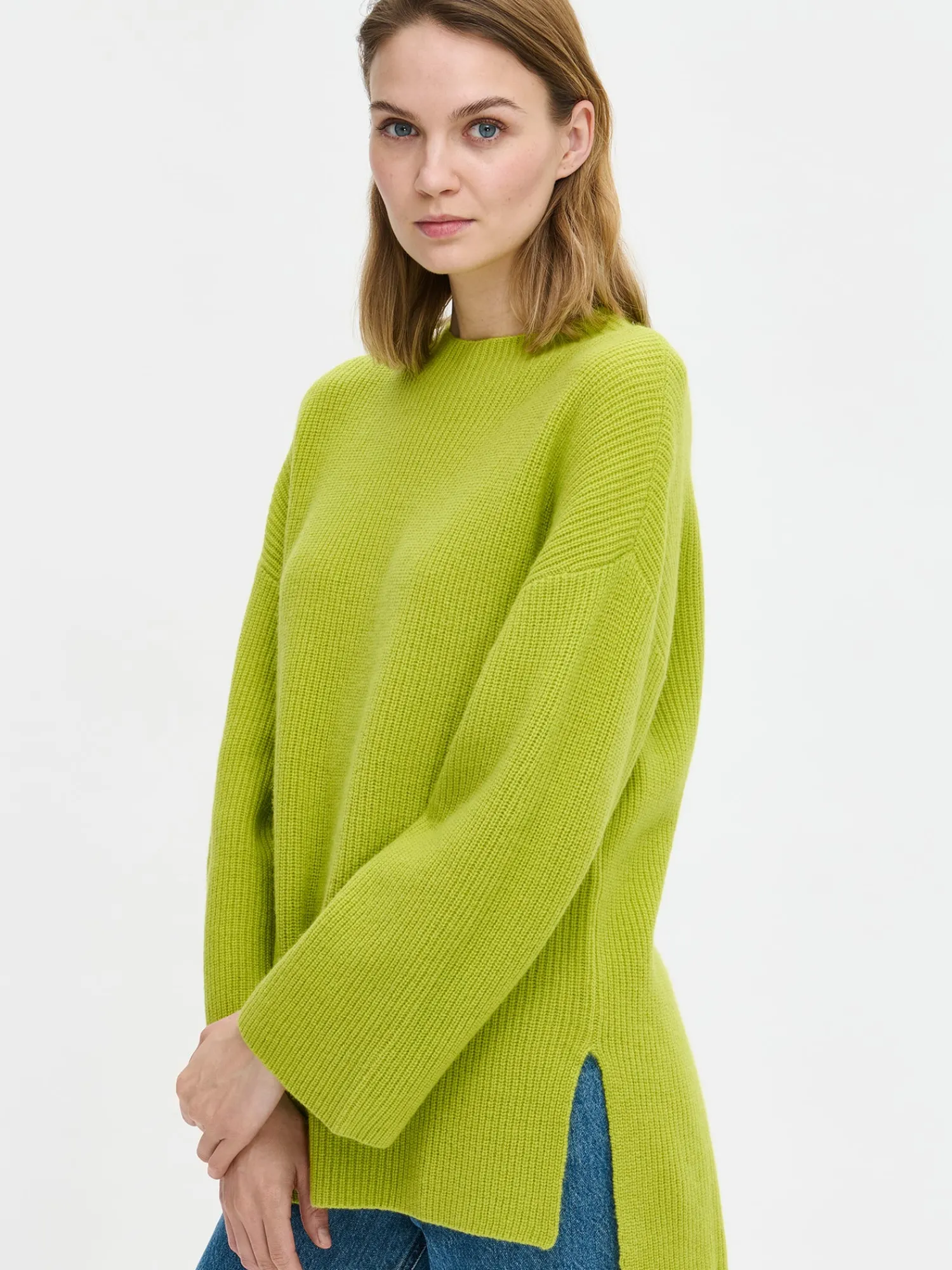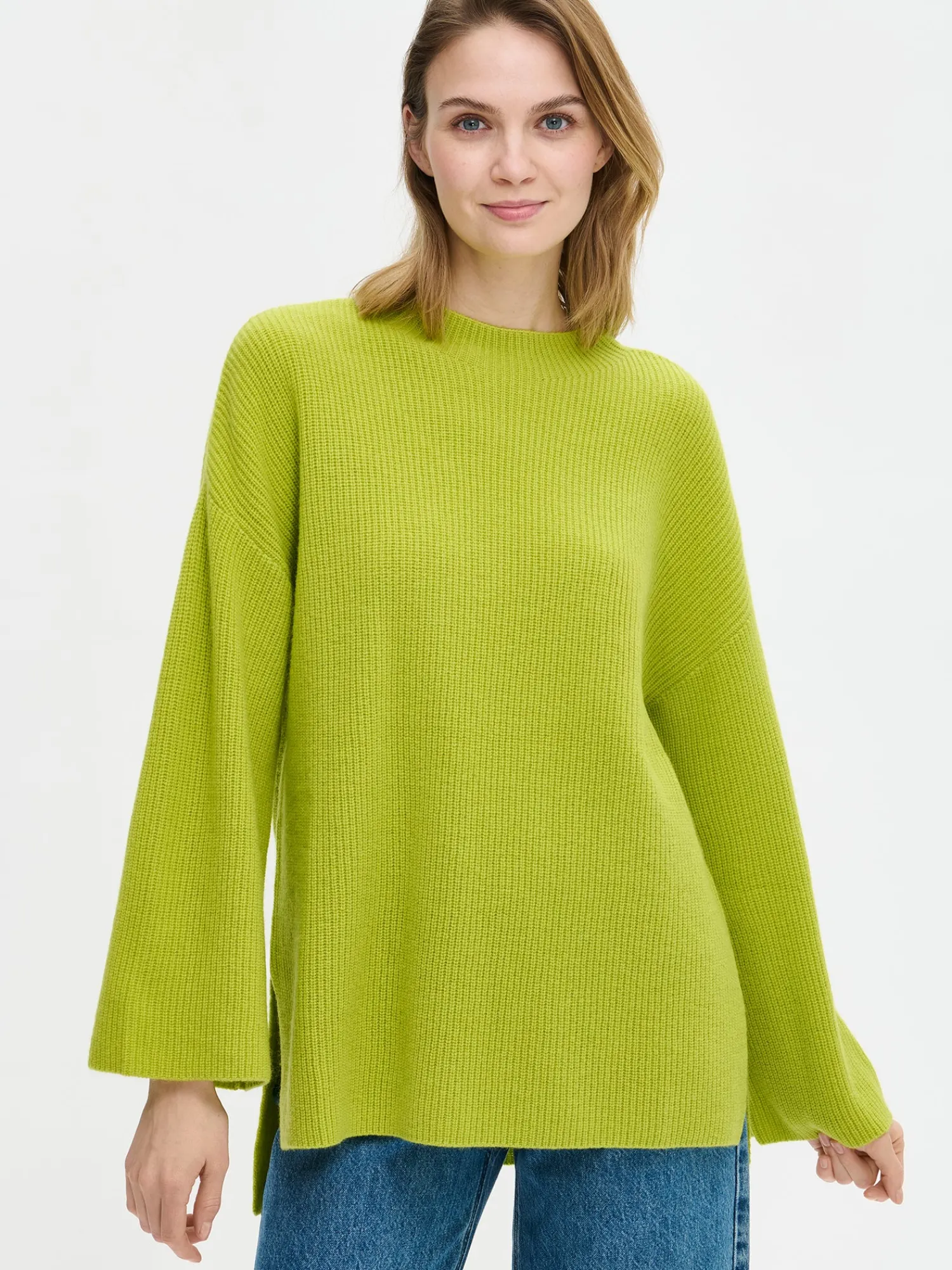 Naisten rento vihreä Pamela-neuletunika. Tyylikkäässä yksivärisessä tunikassa on hieman korotettu pääntie, pudotettu olkalinja ja leveät täyspitkät hihat. Tunikan helma on takaa 6 cm pidempi ja helmassa sivuissa on halkiot. Neulepuseron pituus koossa M on noin 70 cm edestä, 76 cm takaa. Neulepusero on puolipatenttineulosta. Neulos on pehmeän ja miellyttävän tuntuista villa-viskoosi-polyamidi sekoitetta. Tuotteen valmistuksessa on käytetty sertifioitua villaa.