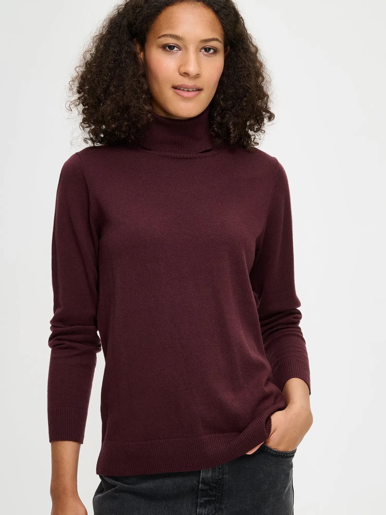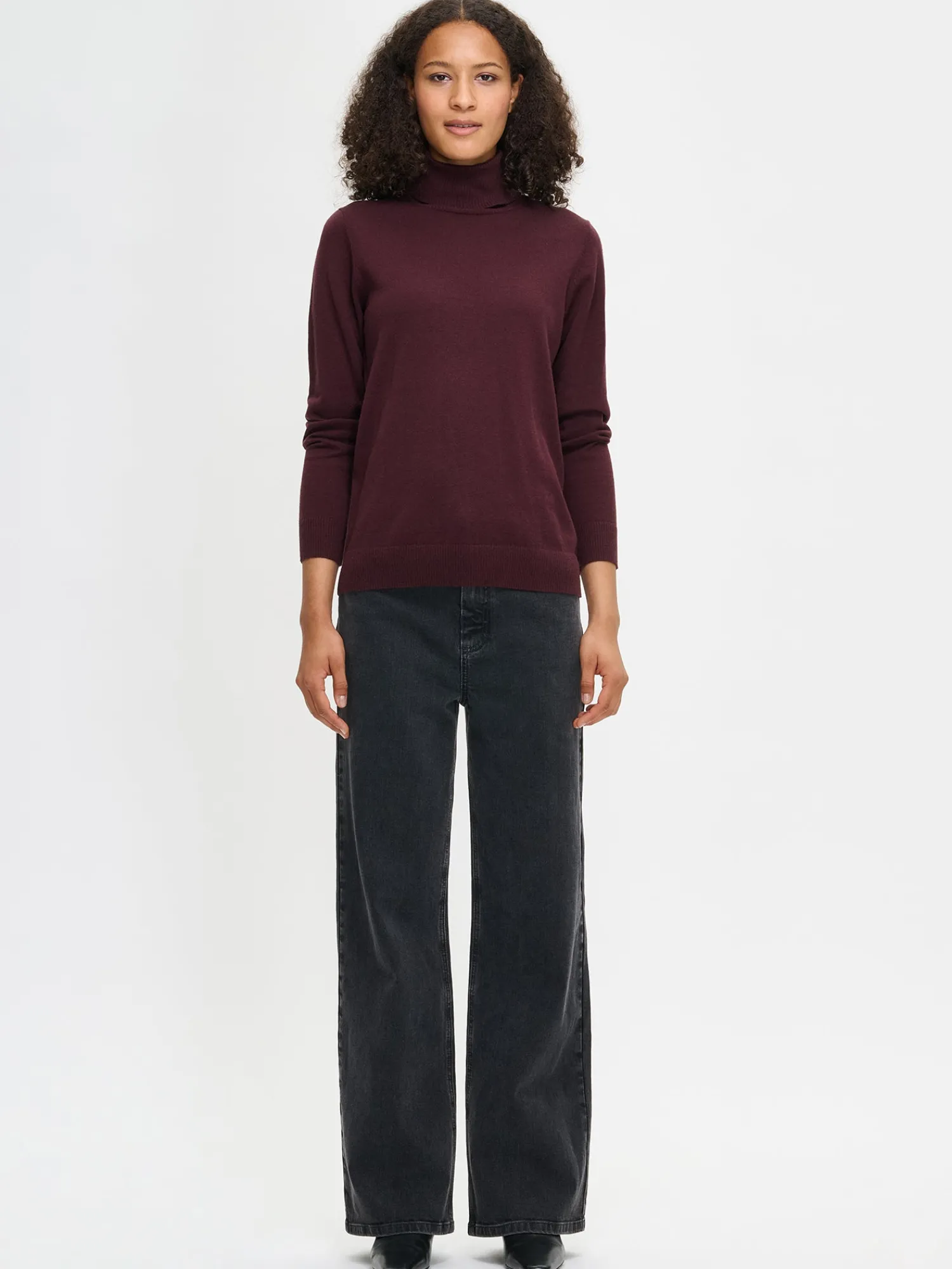 Naisten yksinkertaisen tyylikäs ja kevyt tummanpunainen Villis-neulepusero poolokauluksella. Laadukkaasta merinovillan ja puuvillan sekoitteesta muotoonneulotussa puserossa on täyspitkät hihat. Puseron pituus koossa M on noin 65 cm. Tuote on vesipestävä eikä nyppyynny helposti. Tuotteen valmistuksessa on käytetty sertifioitua mulesing-vapaata merinovillaa. Pehmeä ja hengittävä neule, joka yhdistää ajattoman tyylin ja arjen mukavuuden. Neuleen hoito-ohjeet löydät .
