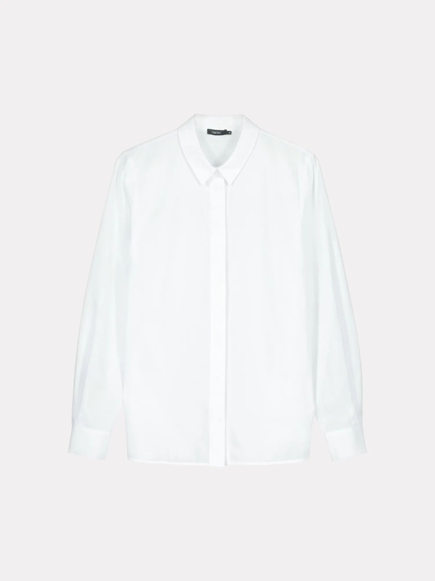 Naisten klassinen valkoinen Lena-paitapusero. Ajaton valkoinen kauluspaita hurmaa monikäyttöisyydellään ja siksi se on varma valinta kerta toisensa jälkeen. Tyylikkäässä paitapuserossa on edessä piilonapitus sekä helmassa sivuissa pyöristetyt halkiot. Puserossa on täyspitkät hihat, joiden hihansuissa on nappikalvosimet. Puseron pituus koossa 38 on noin 70 cm. Tuote on valmistettu laadukkaasta ja ryhdikkäästä kudotusta puuvilla-popliinikankaasta, jonka puuvilla on sertifioitua.