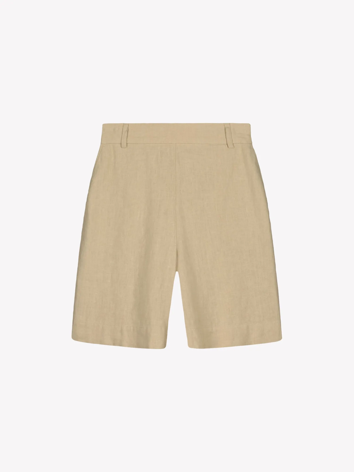 Naisten klassiset beiget Liine-pellavashortsit. Tyylikkäät ja ajattomat pellavashortsit ovat kesän luottovaate. Shortseissa on leveä vyötärökaitale ja takana kuminauha. Shortseissa on sivuissa taskut ja leveä käänne lahkeensuissa. Shortsien lahkeen sisäpituus koossa 38 on noin 24 cm. Materiaali on kudottua pellavakangasta, joka on kestävää ja hengittävää. Pellavalle on ominaista luonnollinen pieni rypistyminen. Tuote on esipesty tuotannossa, joten se ei kutistu ensimmäisessä pesussa.