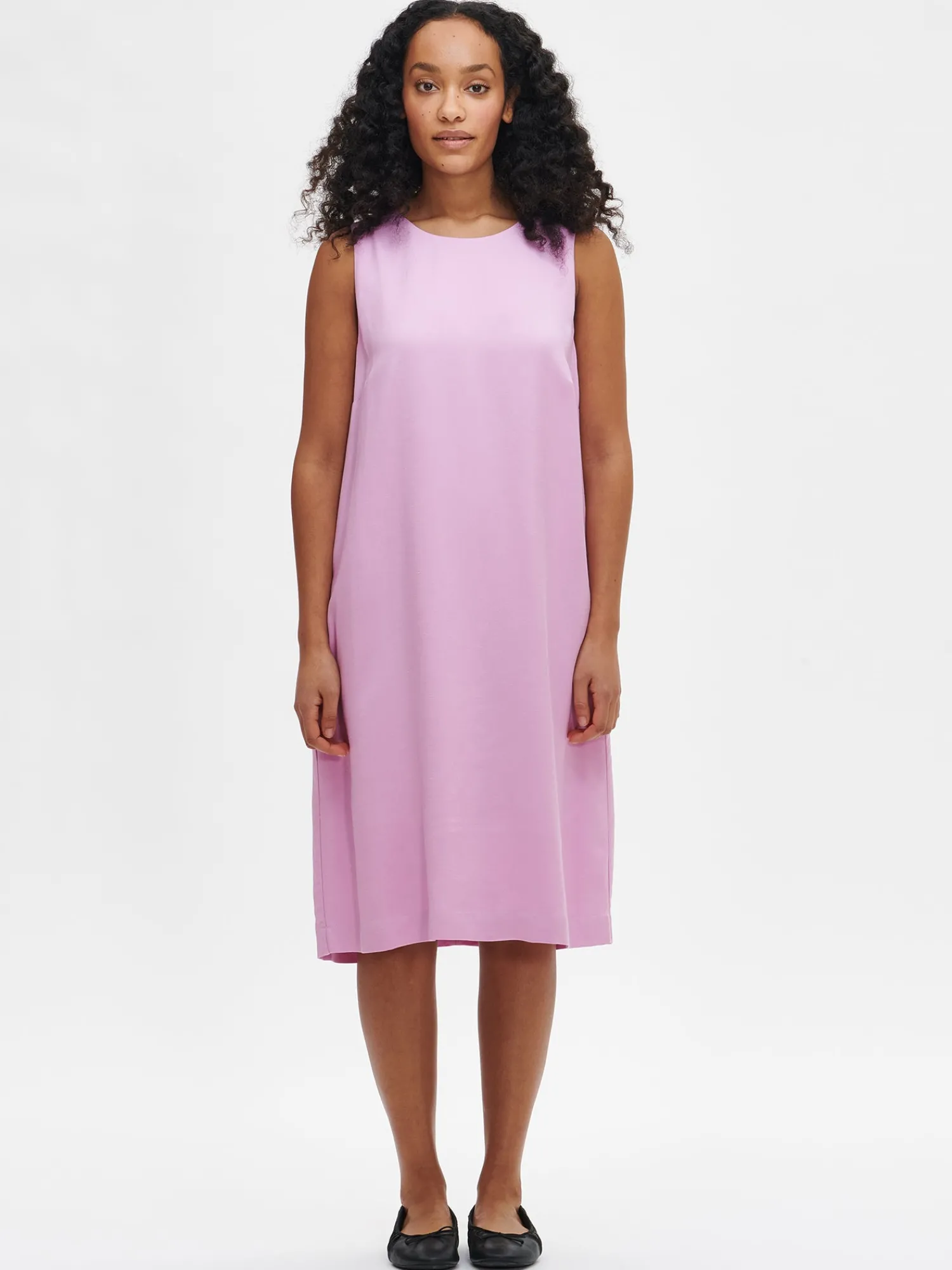 Naisten kaunis vaaleanpunainen Lila-mekko. Kevyesti A-linjaisessa mekossa on vuori, vetoketju takana, rintamuotolaskokset ja sivusaumassa taskut. Mekon pituus koossa 38 on noin 98 cm. Materiaali on laadukasta ja miellyttävän tuntuista viskoosi-pellava-kangasta. Kankaan pinta on twill sidoksinen ja pinnassa on hienostunut, himmeä kiilto. Materiaalille on ominaista 3-5% kutistuminen ensimmäisessä pesussa. Vuorin materiaali on 100 % viskoosia.