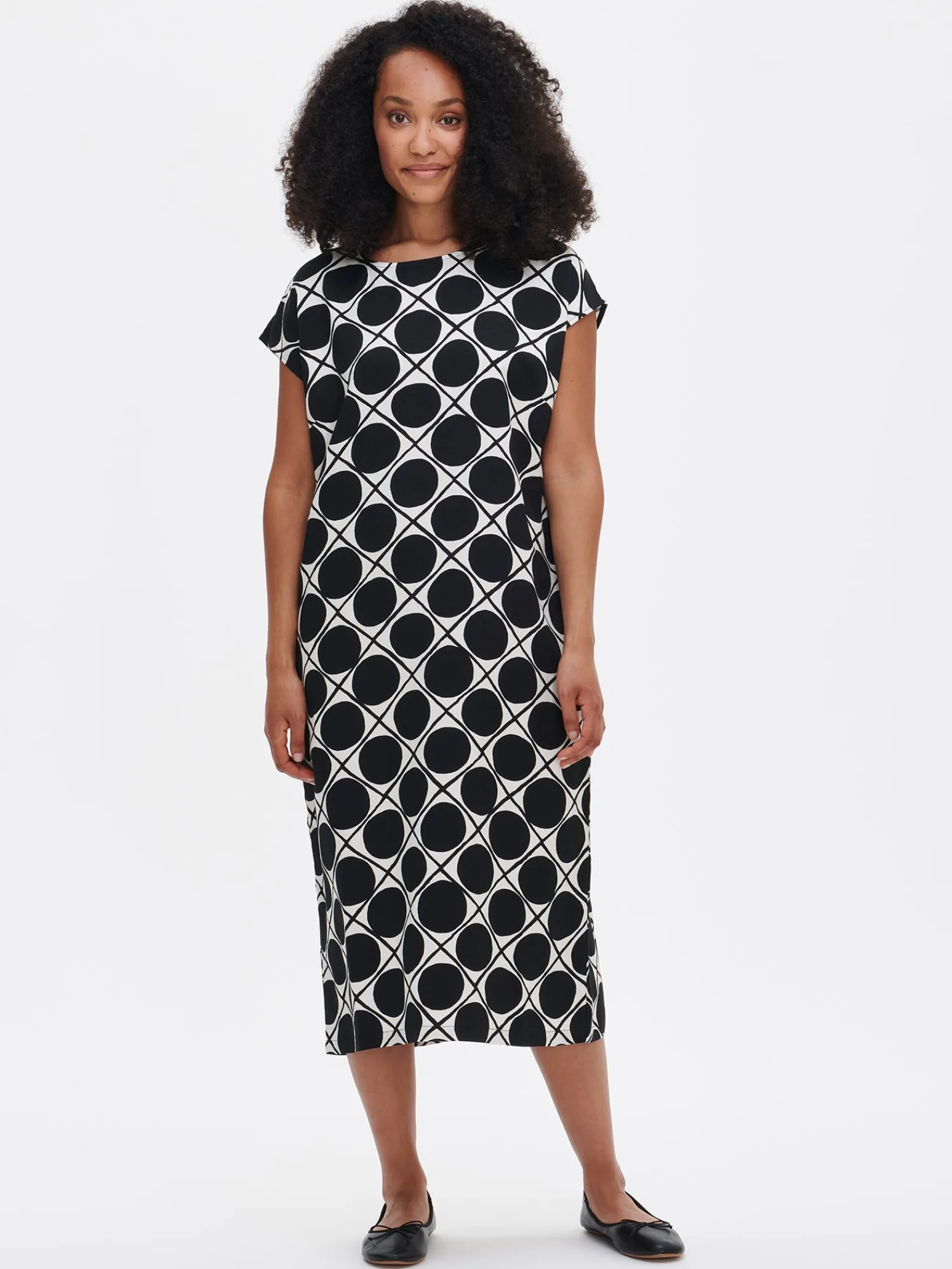 Naisten kuosillinen musta Napoli-mekko. Rennossa hihattomassa mekossa on kantilla viimeistelty pyöreä pääntie. Mekossa on suora helma ja sivutaskut. Mekon pituus koossa 38 on noin 115 cm. Kauniisti laskeutuvan mekon materiaali on laadukasta ja miellyttävän tuntuista kudottua viskoosi-pellava-kangasta. Kankaan pinta on twill sidoksinen ja pinnassa on hienostunut, himmeä kiilto. Materiaalille on ominaista 3-5% kutistuminen ensimmäisessä pesussa.