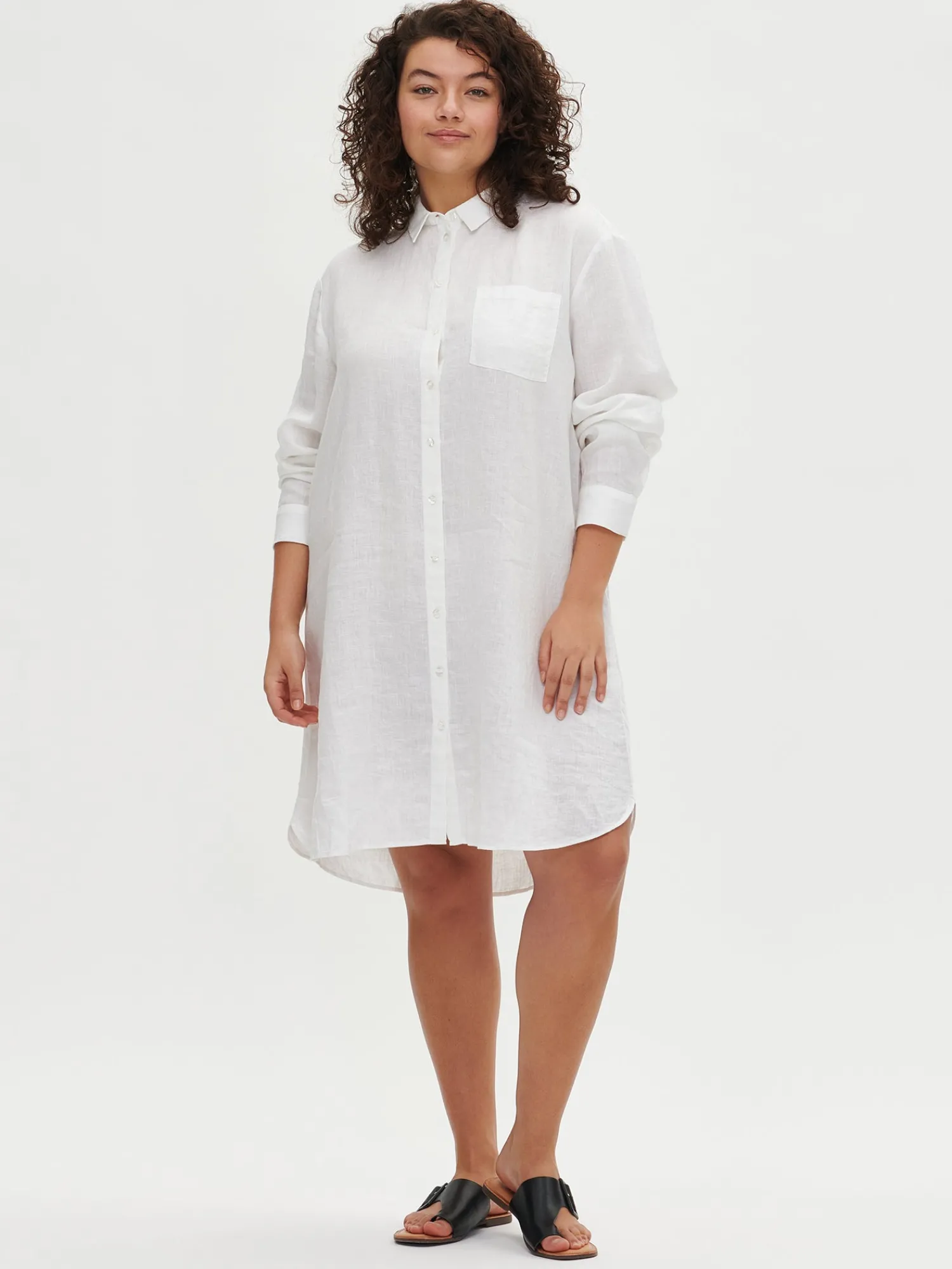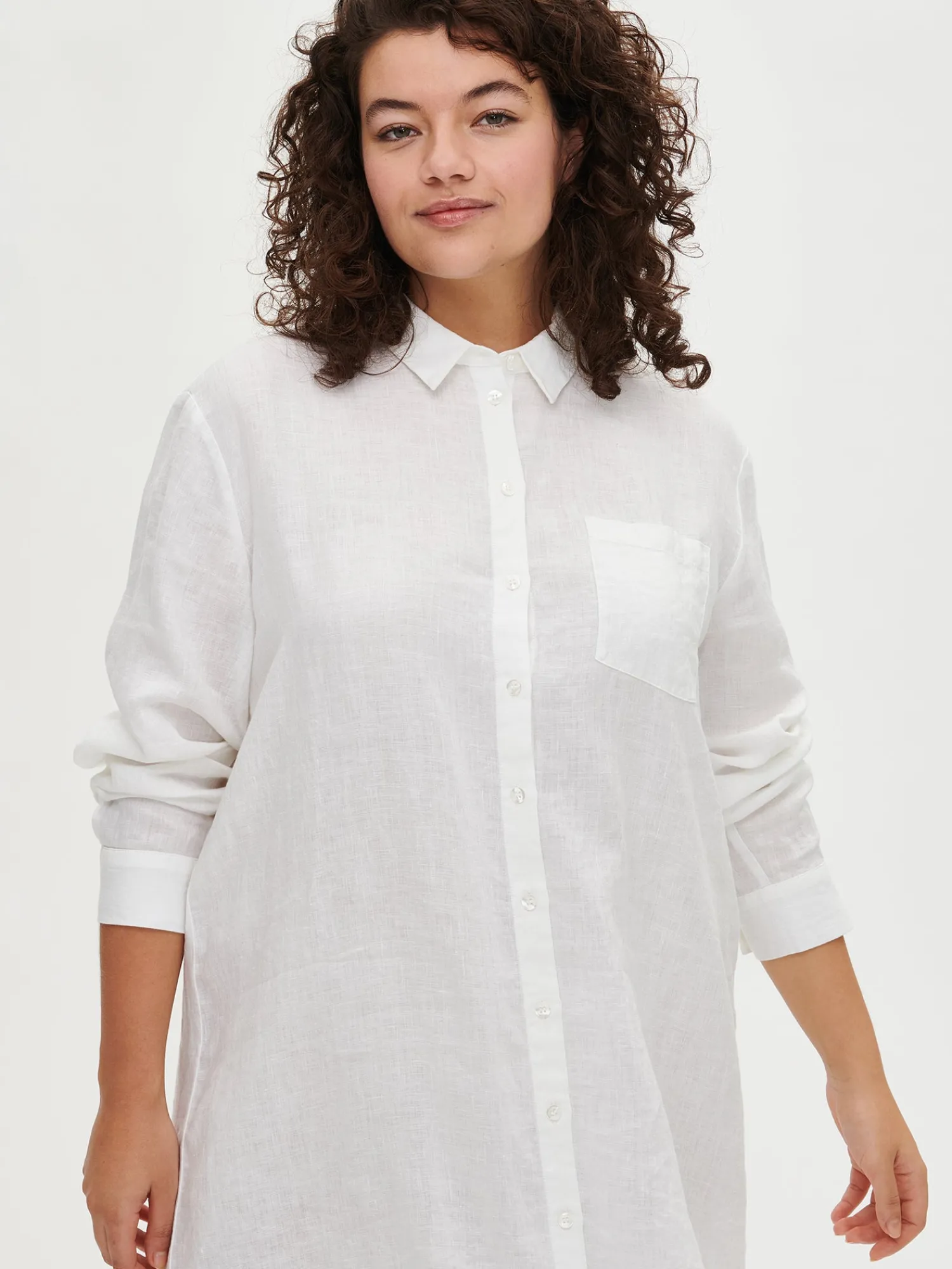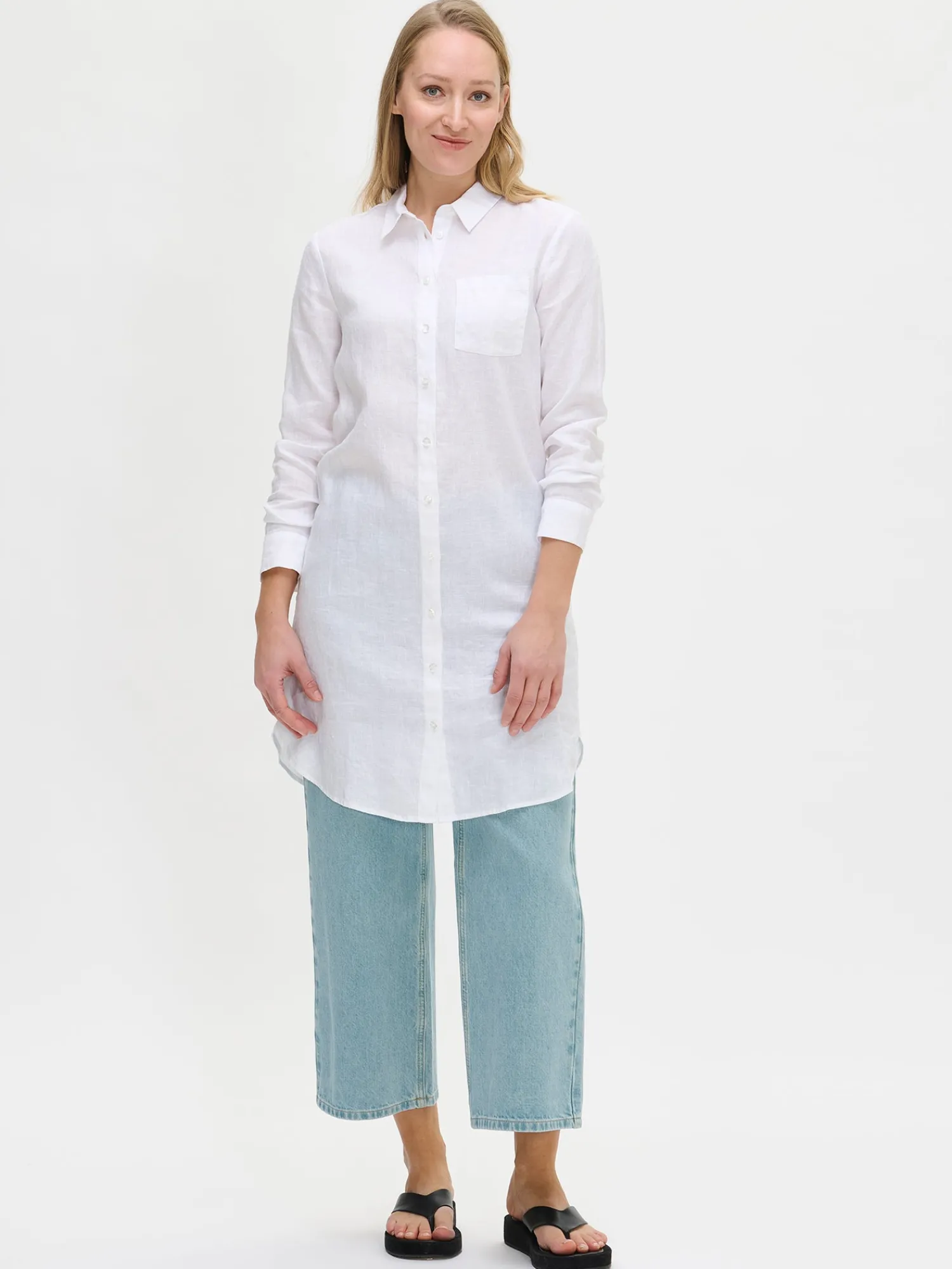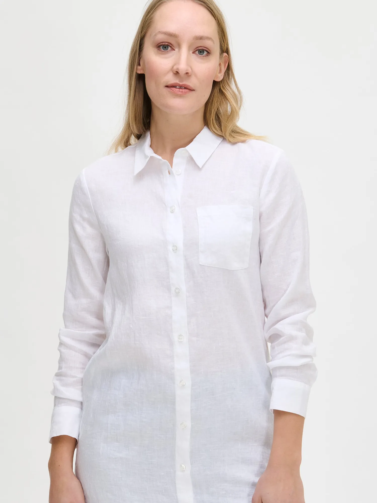 Naisten rento ja pitkä valkoinen Pellava-paitapusero. Klassinen pitkä kauluspaita sopii niin arkeen kuin juhlaan. Tyylikäs pitkähihainen paitapusero on kesän monipuolinen luottovaate – voit pukea sen sekä mekkona, että pitkänä paitapuserona housujen kanssa. Pellavapuserossa on napit edessä ja rintatasku. Pitkä paidan pituus koossa 38 on noin 95 cm. Materiaali on kudottua pellavakangasta, joka on kestävää ja hengittävää. Pellavalle on ominaista luonnollinen pieni rypistyminen. Tuote on esipesty tuotannossa, joten se ei kutistu ensimmäisessä pesussa.