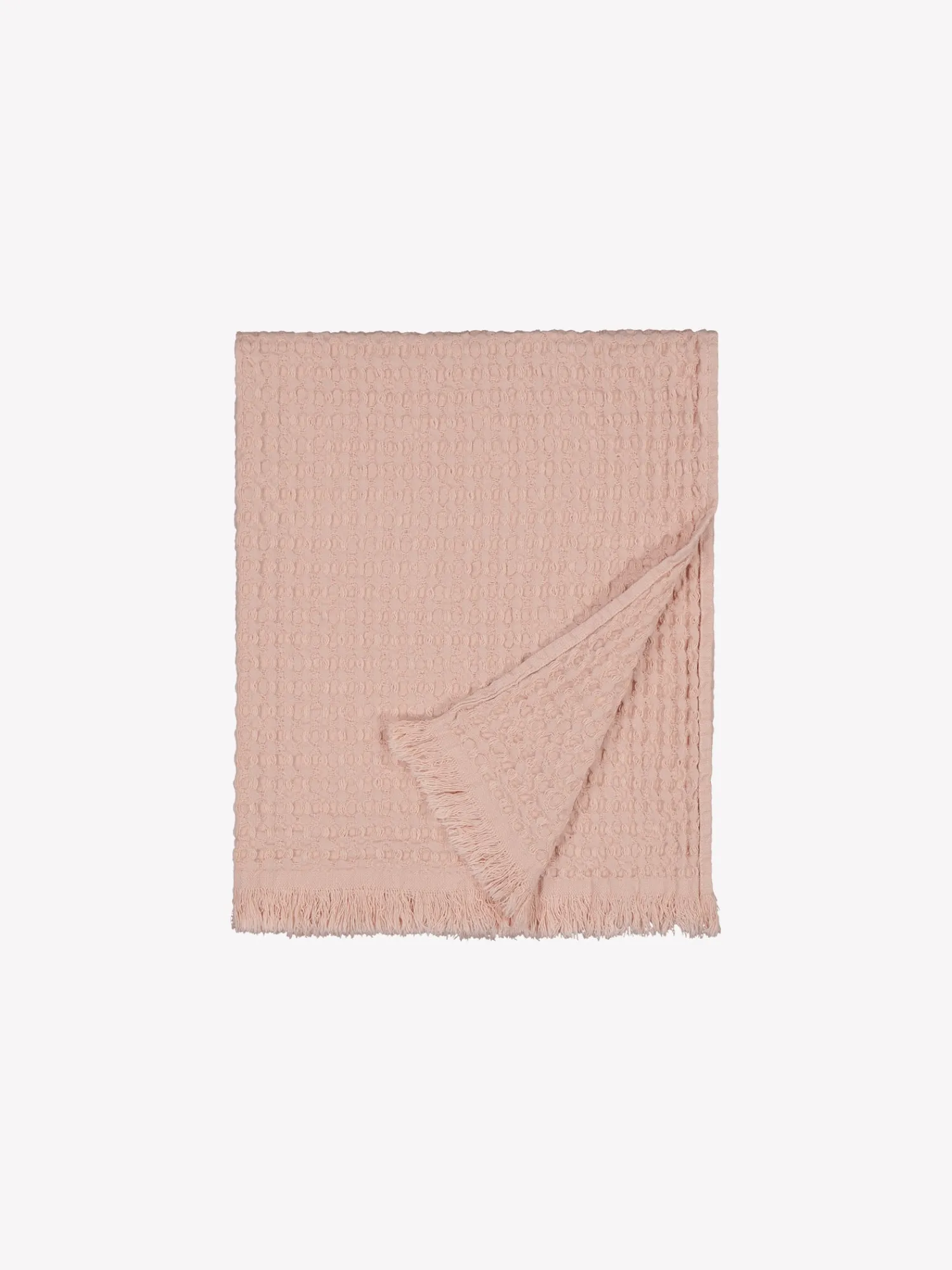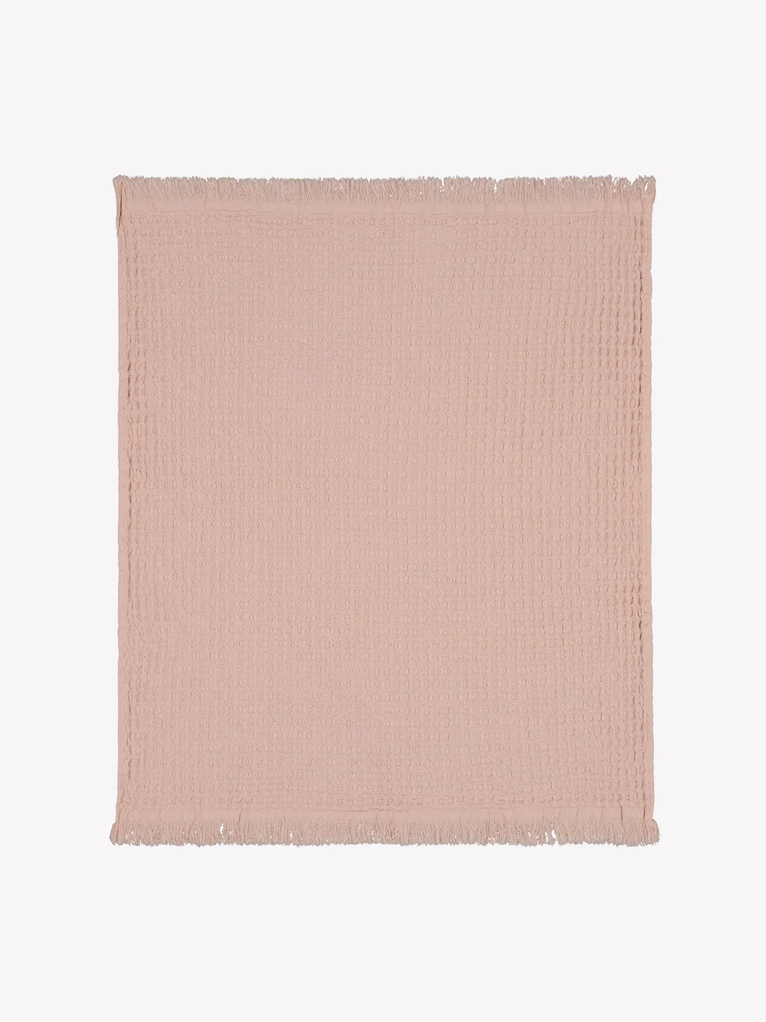 Nanson roosa Vohveli-käsipyyhe. Vohveli-pyyhkeessämme yhdistyvät nostalgisen vohvelikankaan hyvät ominaisuudet ja moderni ulkonäkö. Vohvelikangas imee hyvin kosteutta ja kuivuu nopeasti keveytensä ansiosta. Laadukas pyyhe tuntuu miellyttävältä iholla. Kangas on värjätty Öko-Tex 100 -standardin mukaisilla värjäysaineilla. Käsipyyhkeen koko on 50 cm x 70 cm ja ripustuslenkki on pitkällä sivulla.